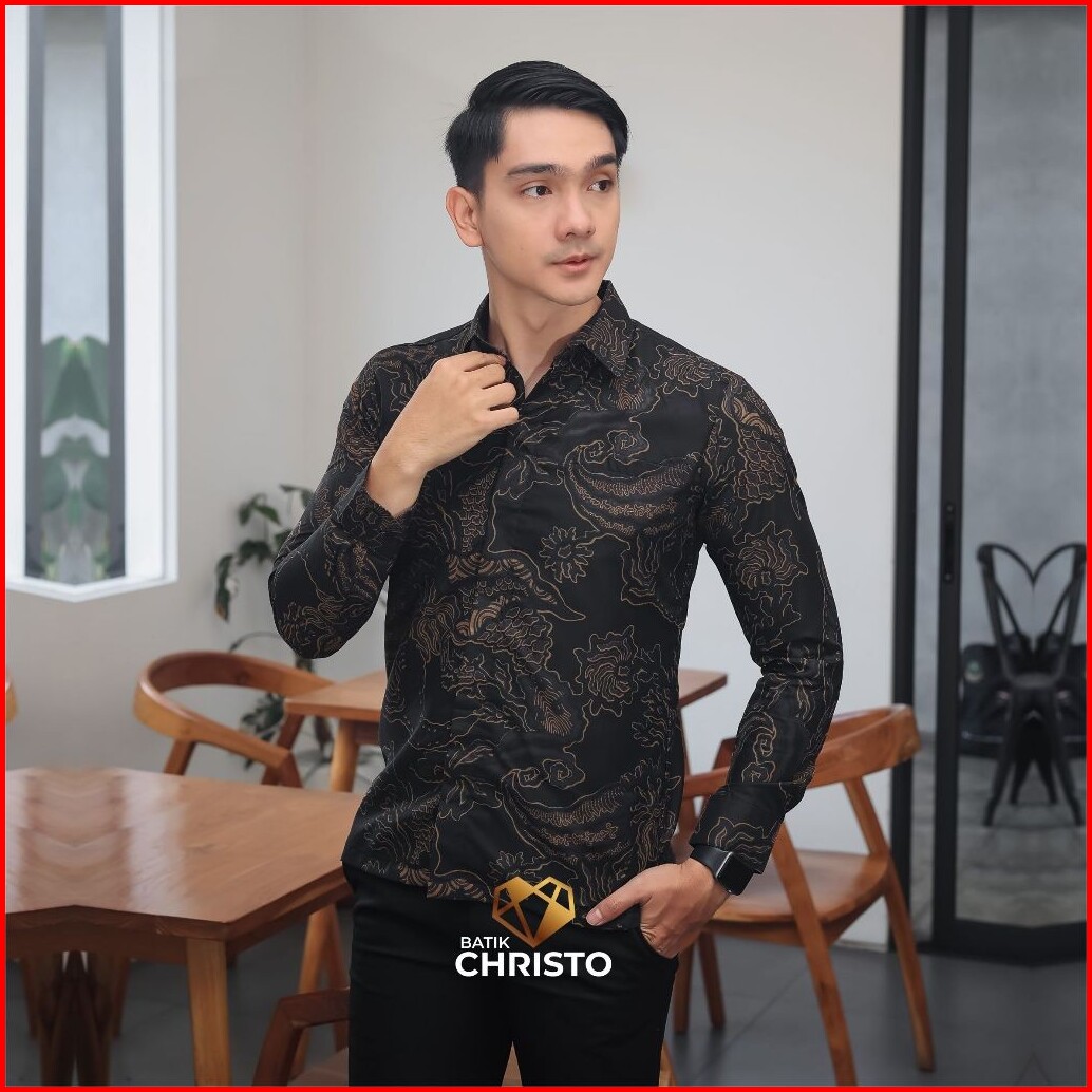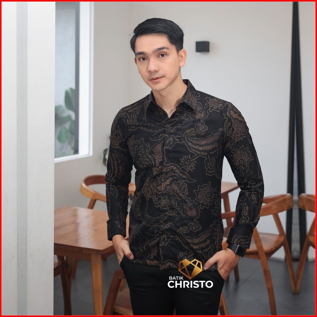 Kemeja Batik Pria Baju Lengan Panjang Slimfit Lapis Furing Batik Christo 1038 Bahan Katun Premium Elegan Motif Formal
