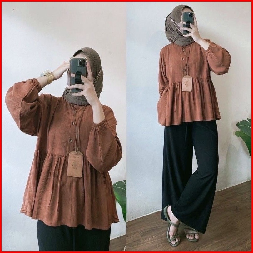 Raisa Blouse Crinkle Rayon Premium Rania Top Blouse Wanita Atasan Crinkle