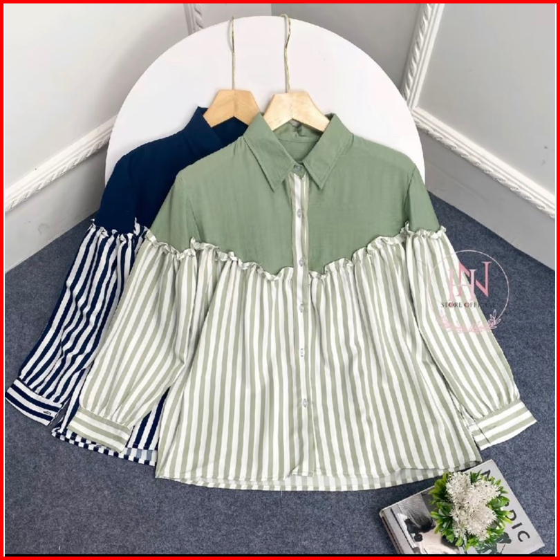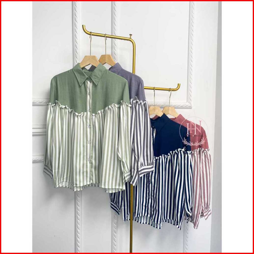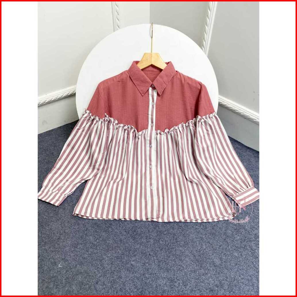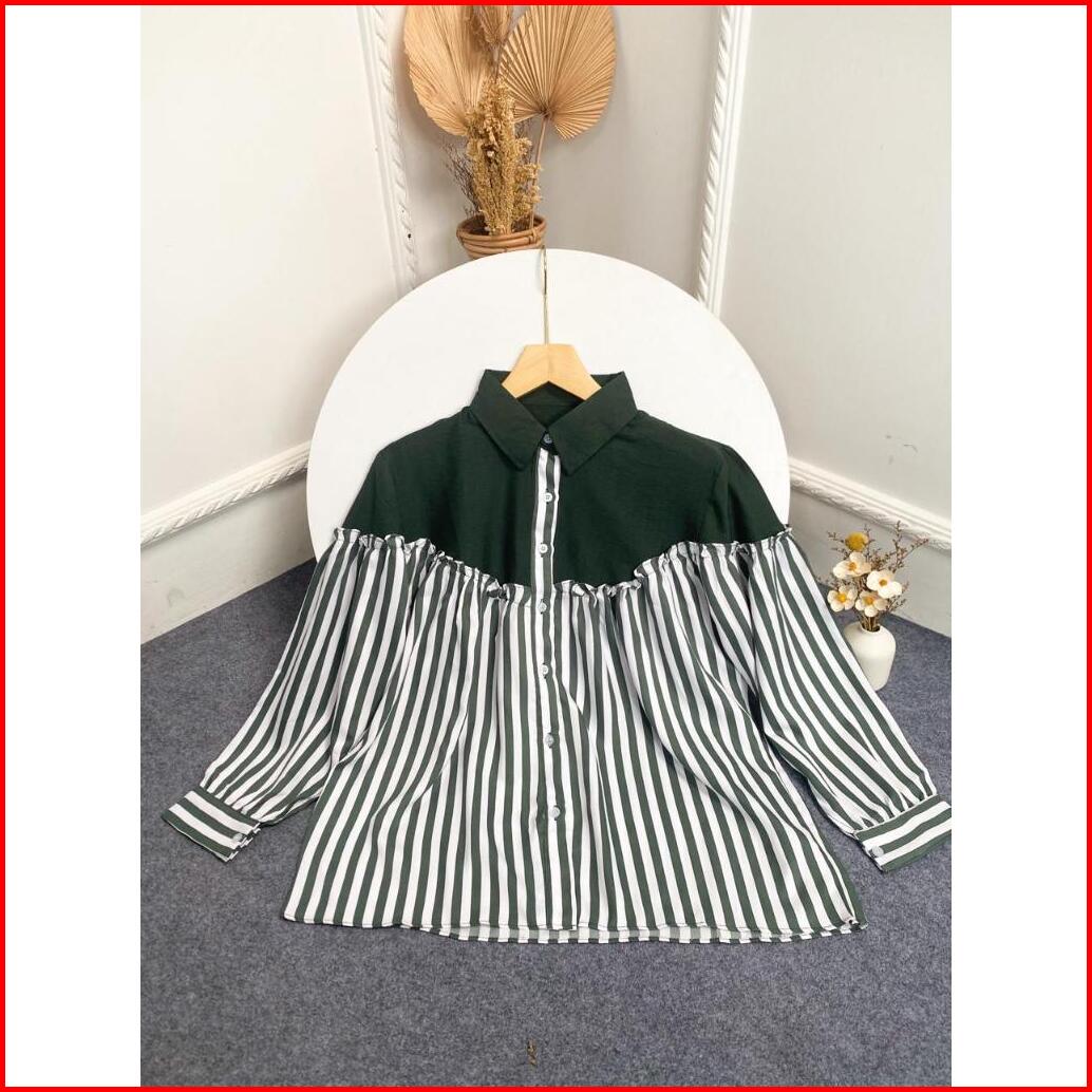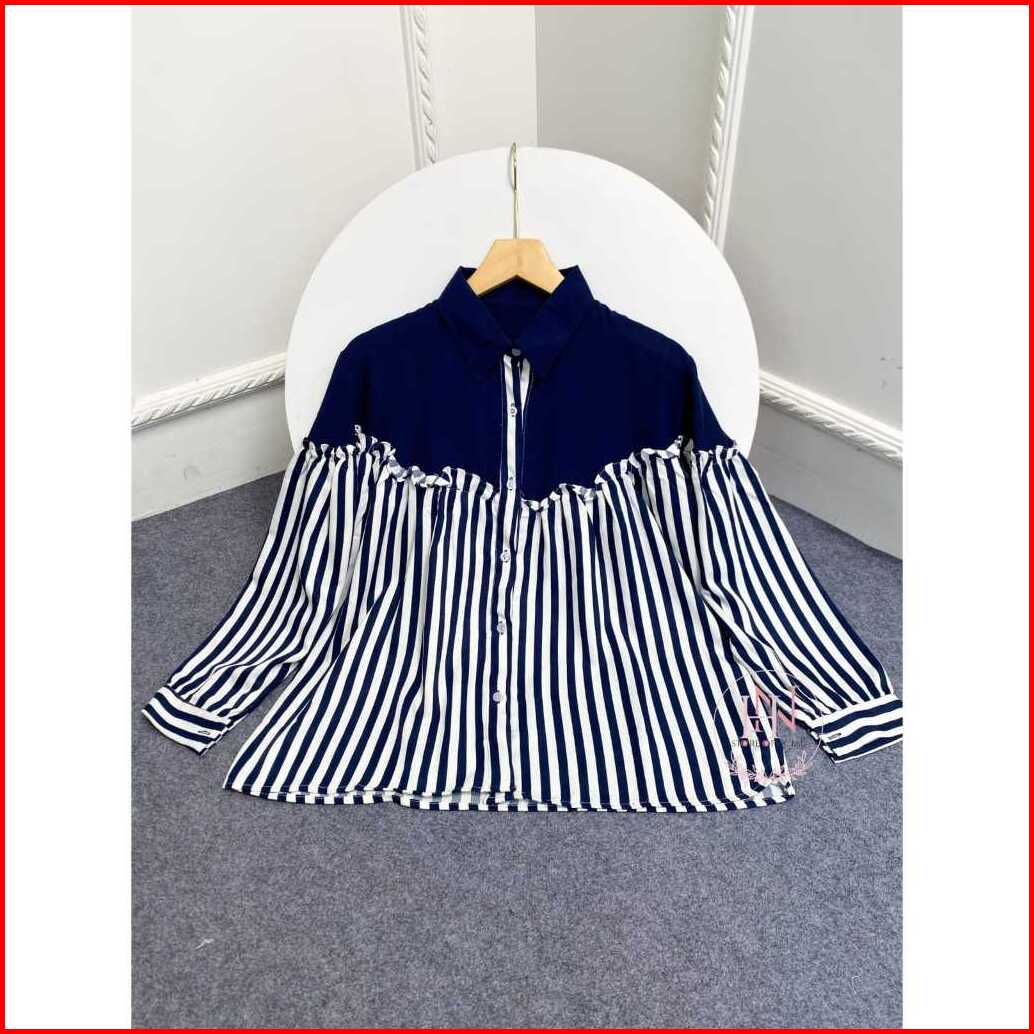 Bianca Shirt Kemeja Kombinasi Salur Kemeja Formal Casual Wanita Motif