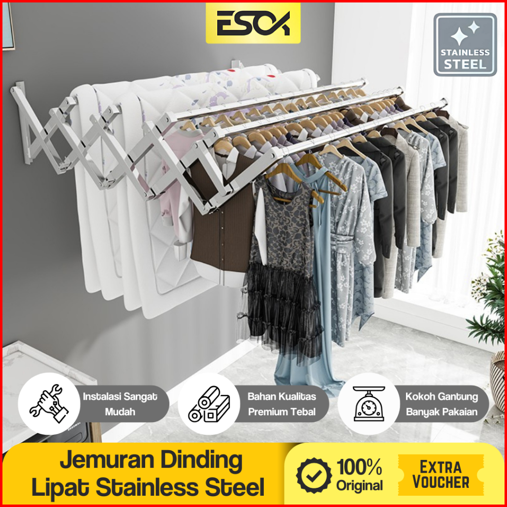 Esok Jemuran Baju Tempel Dinding - Rak Jemuran Pakaian Basah Lipat Rak Jemuran Tembok