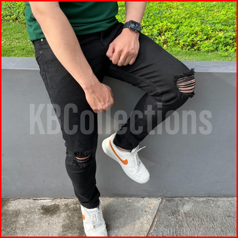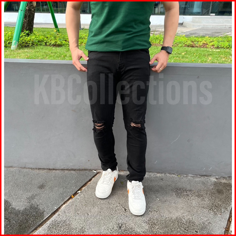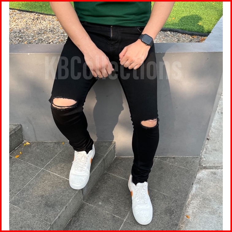 Kbcollections Celana Panjang Jeans Hitam Pria Sobek Lutut Skinny Ripped Jeans Robek Dan Polos