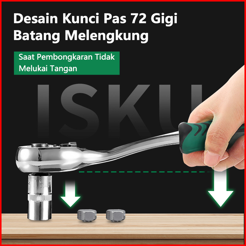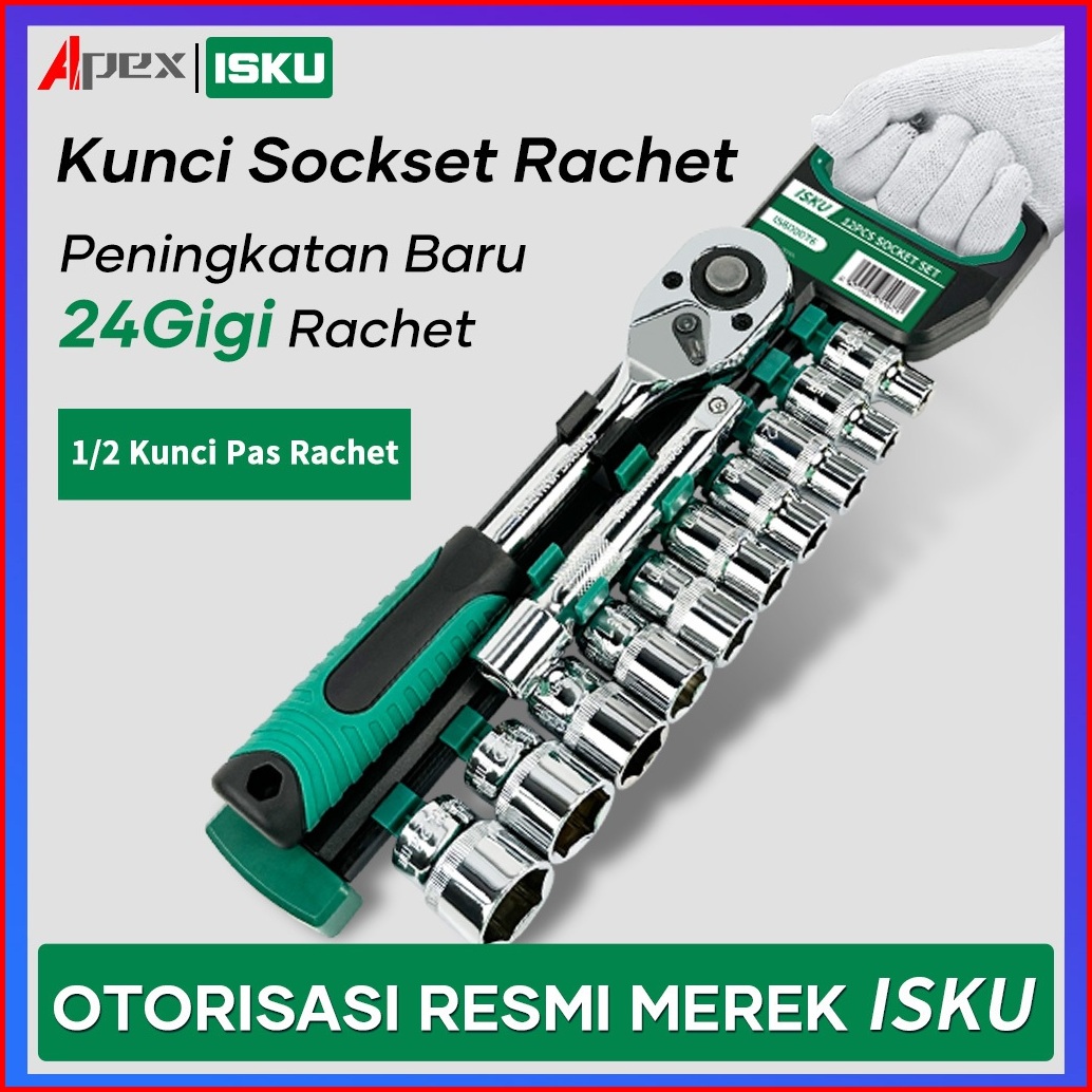 Isku Kunci Sok Socket Set 12 Pcs Kunci Pas Ratchet 1 2 Inch 24gigi Kunci Extention Bar Wrench Set Bahan Chrome Vanadium