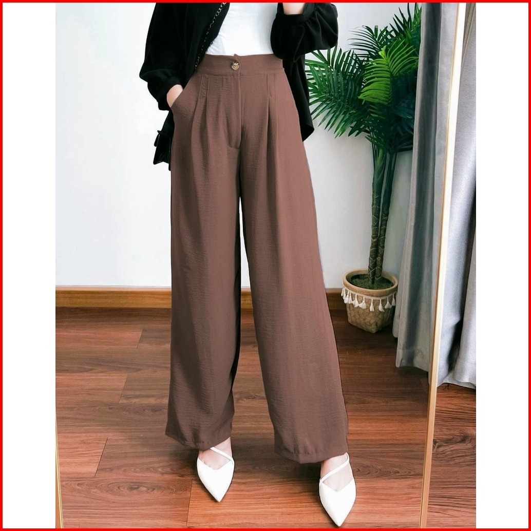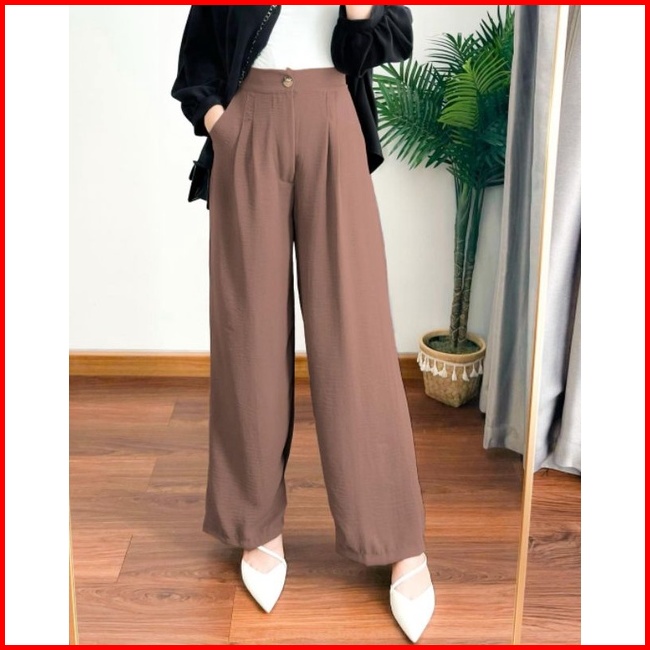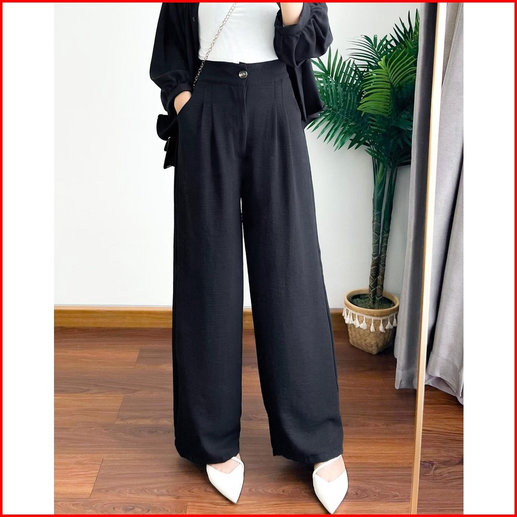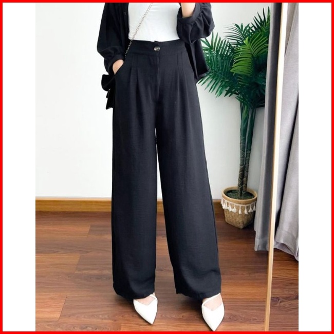 Zada Crinkle Cullote Highwaist Wanita Celana Kulot Crinkle Airflow Premium Polos Resleting