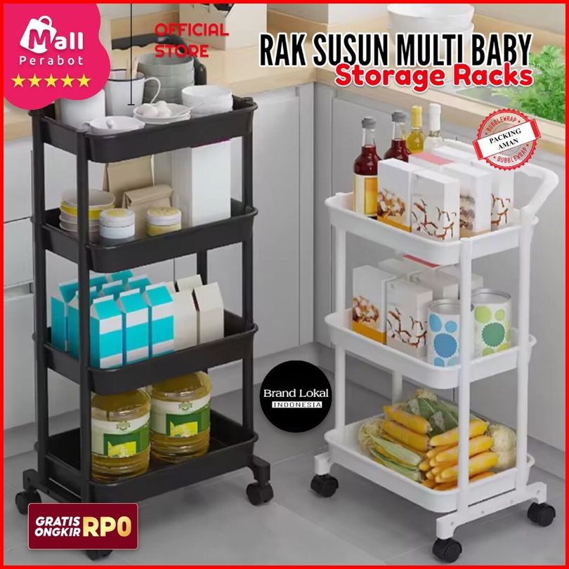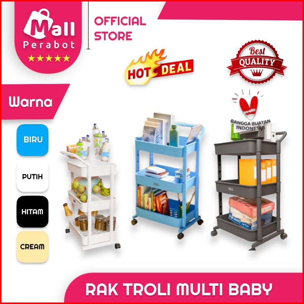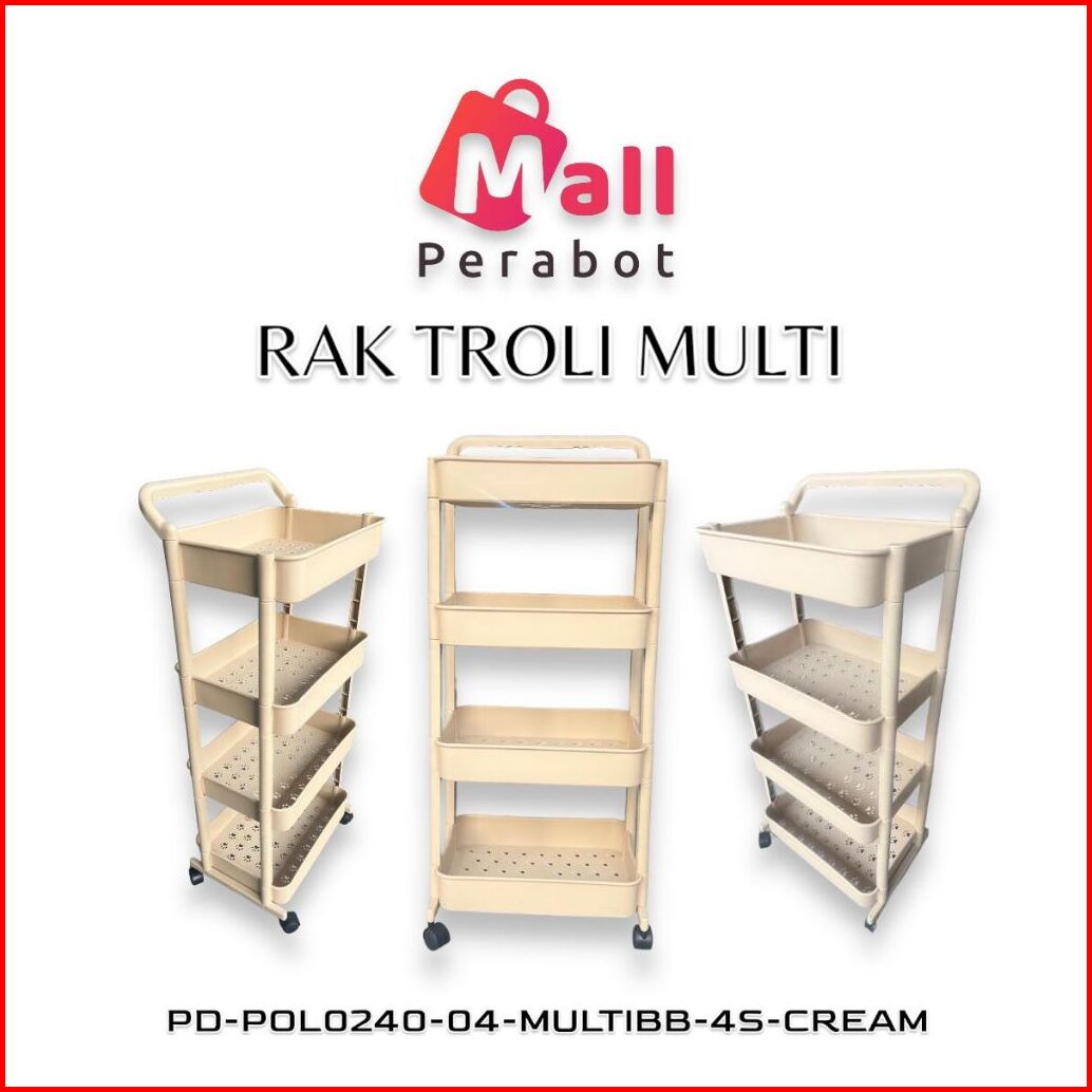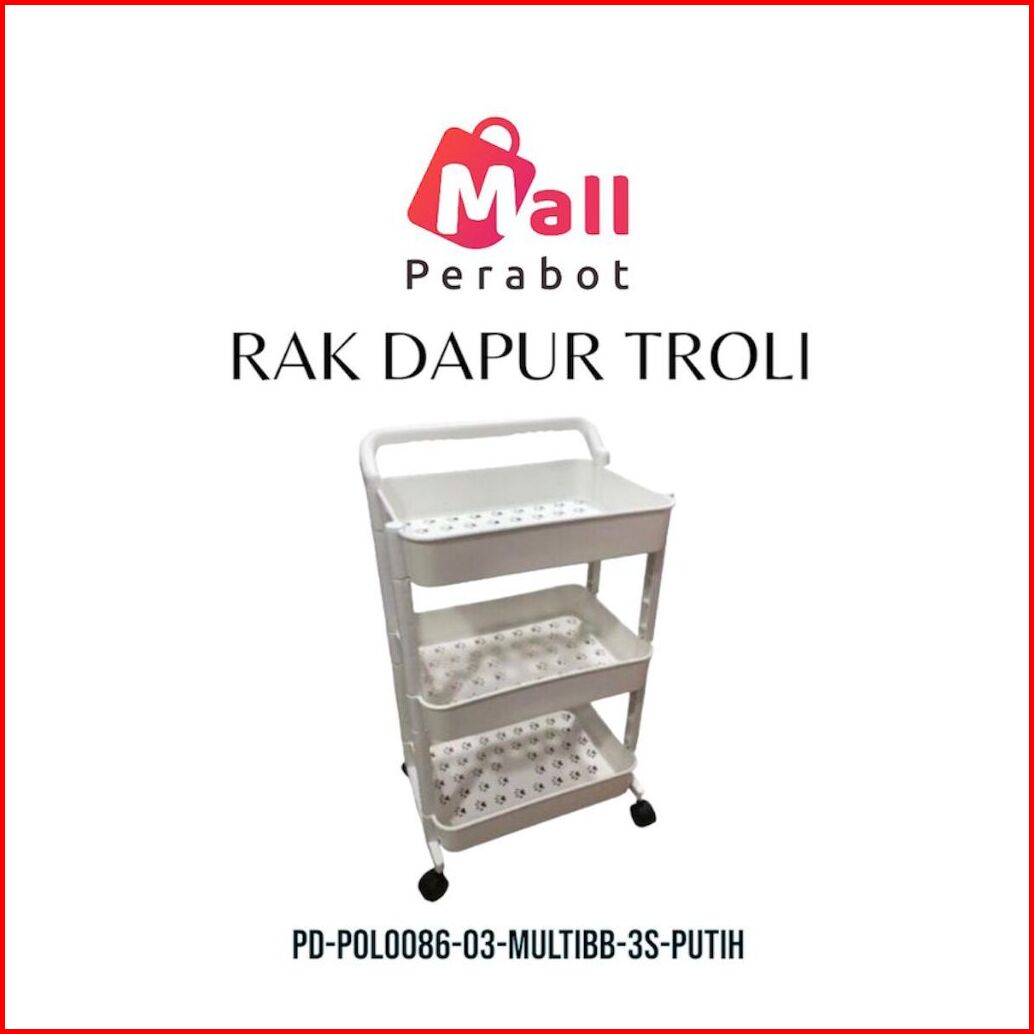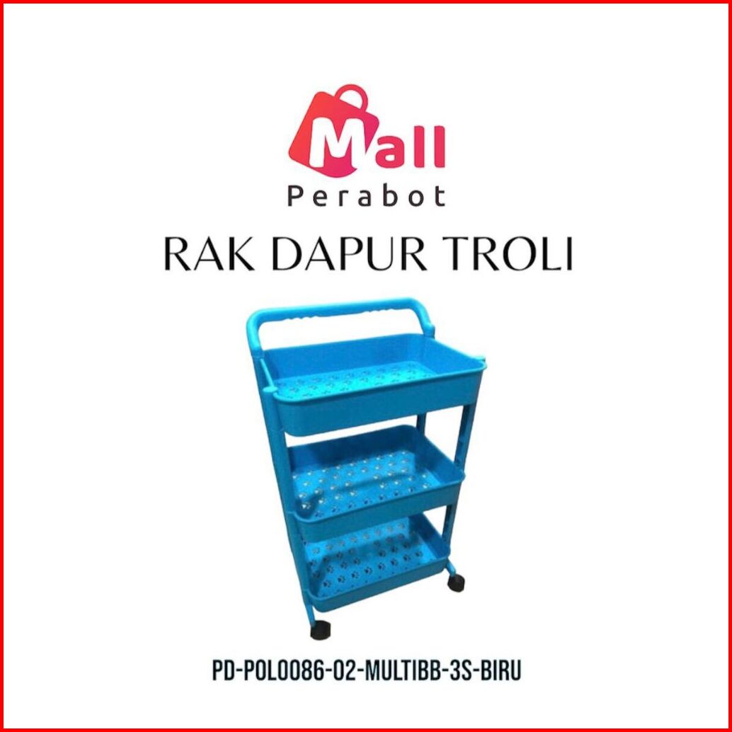 Mall Perabot Rak Troli Susun Plastik Serbaguna Persegi Panjang 3 Susun Rak Dapur Rak Salon Tempat Penyimpanan Rak Toilet