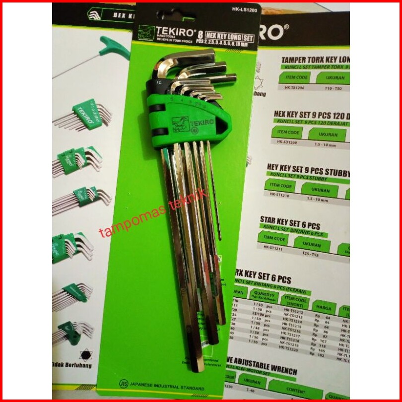 Kunci L Set Tekiro 8pcs Kunci L Tekiro Panjang Tekiro Original 2-10mm Kunci L Tekiro 8pcs Pendek