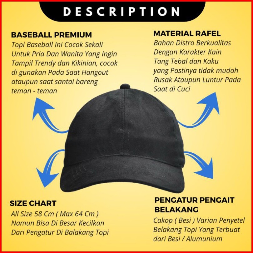 Topi Polos Baseball Pria Hitam Distro Berkualitas Bahan Rafel Penyetel Cakop Dan Rel