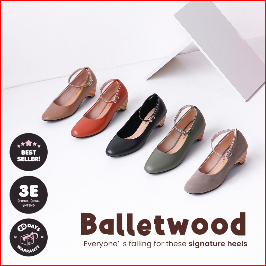 Alivelovearts Balletwood Nude Series Hak 3cm Sepatu Pantofel Kantor Wanita Heels Kerja
