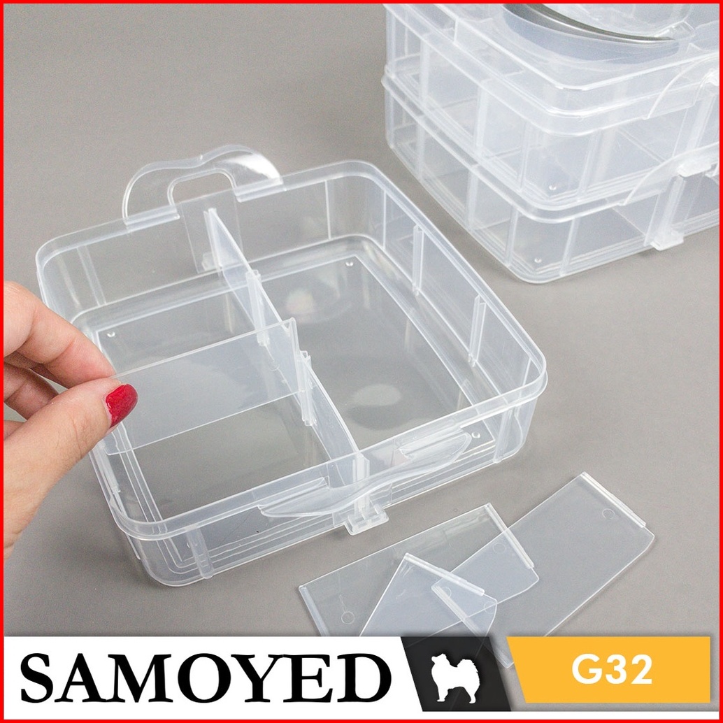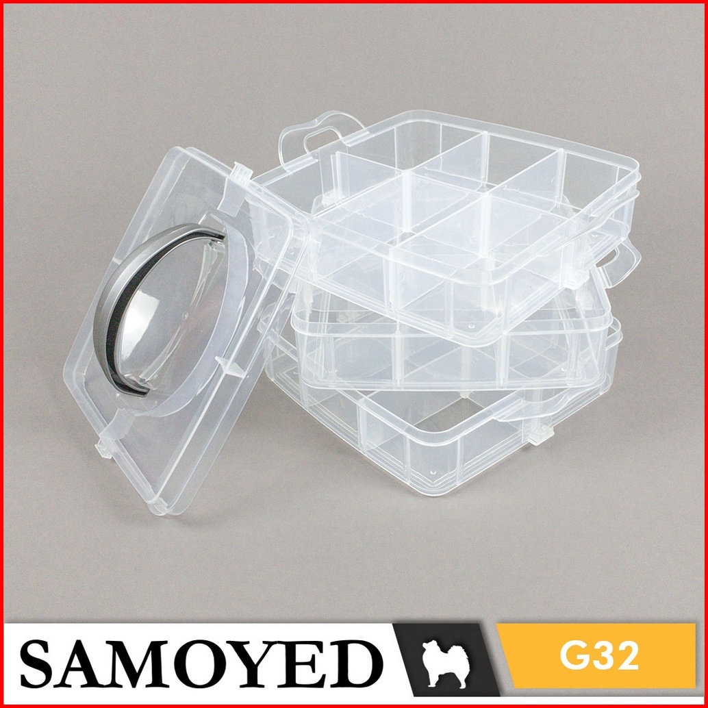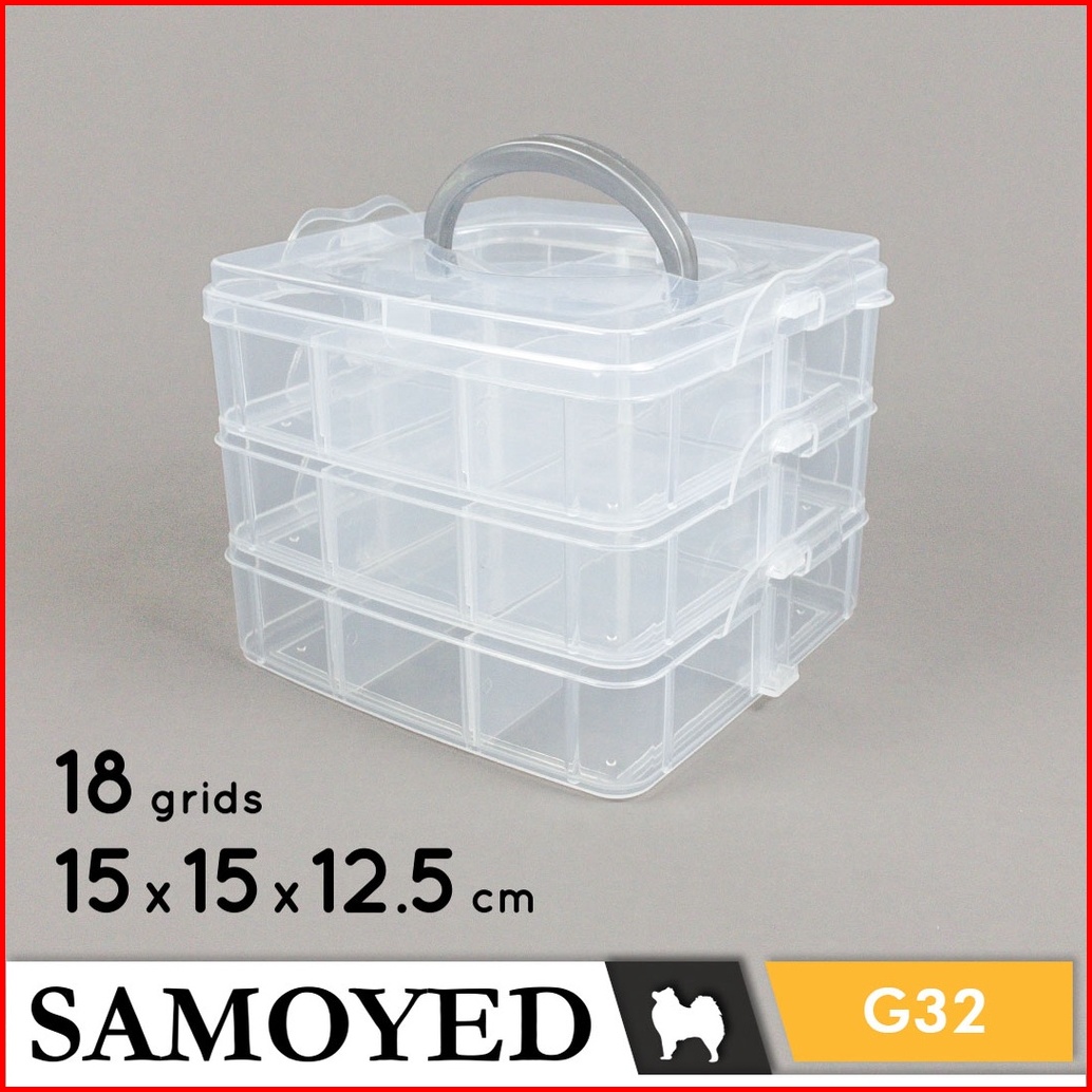 Tempat Kotak Plastik Penyimpanan Serba Guna 3 Lapis 18 Sekat Grids Plastic Storage Container Organizer Box Samoyed Stbx-