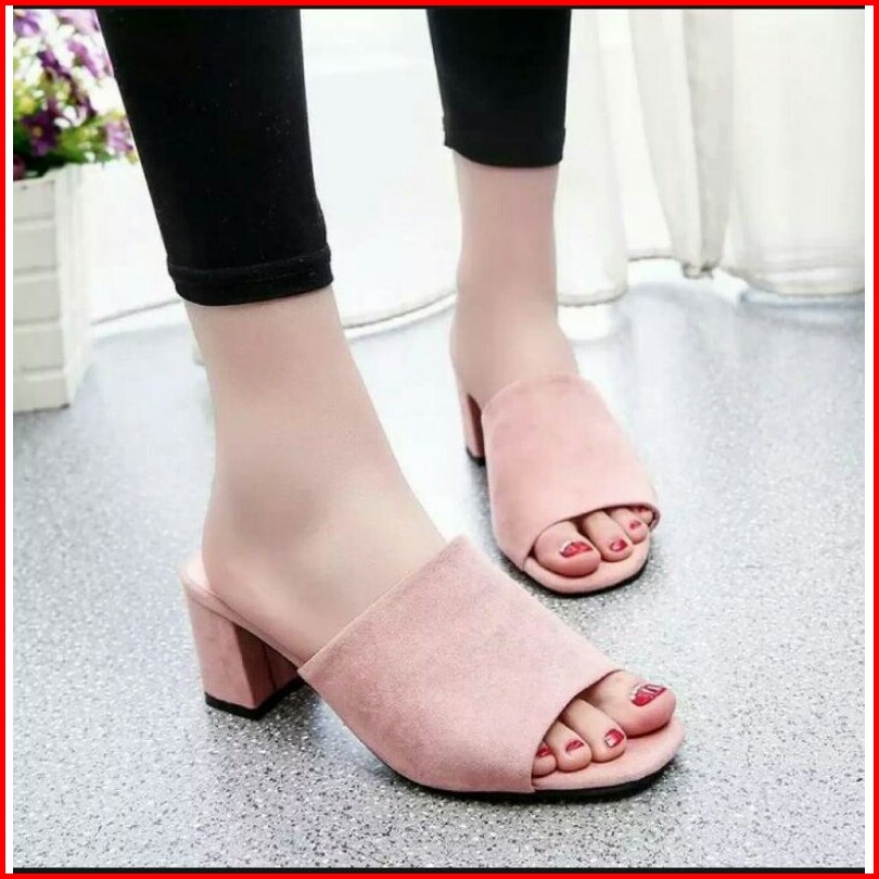 Sandal Wanita Terbaru Kekinian Sandal Selop Wanita Sandal Hak Tinggi 5cm Sendal Wanita Kekinian