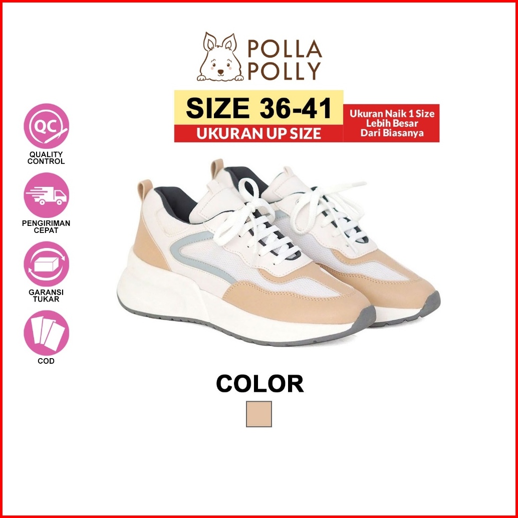 Polla Polly X Suga Beige - Sepatu Sneakers Sport Wanita 36-41 Model Korea Sneaker Low Cut