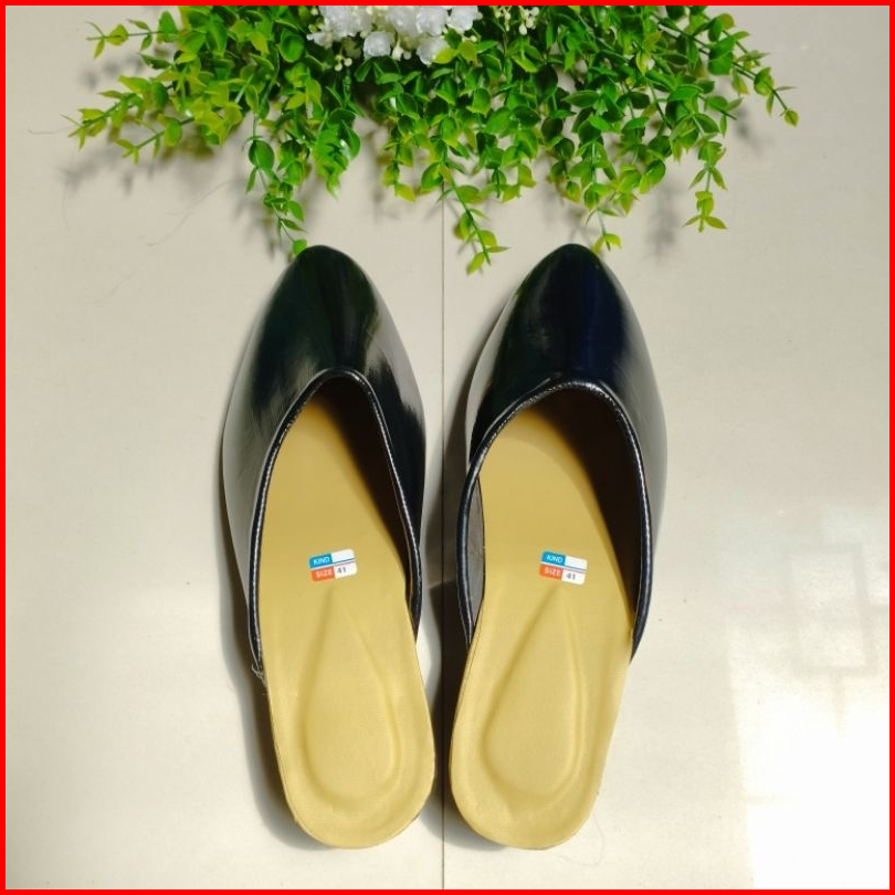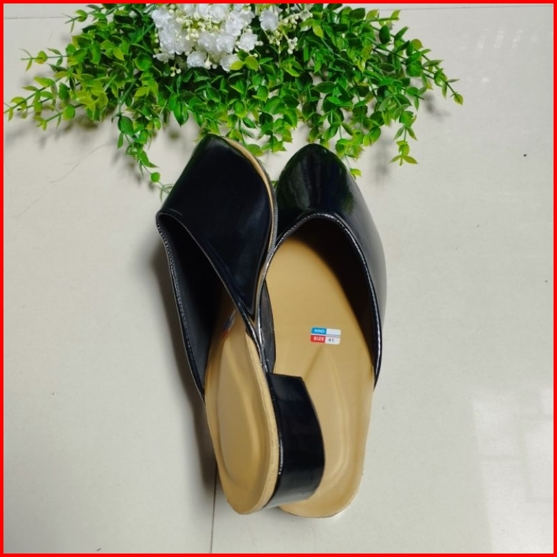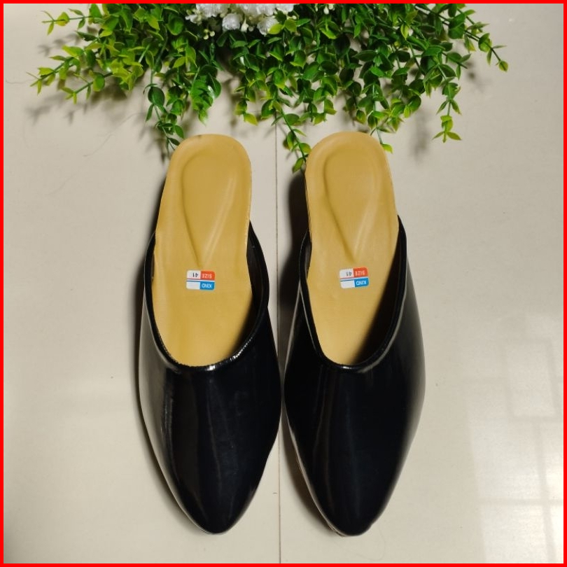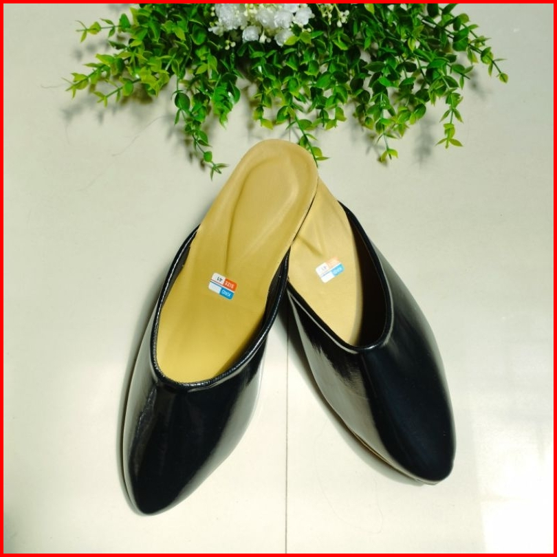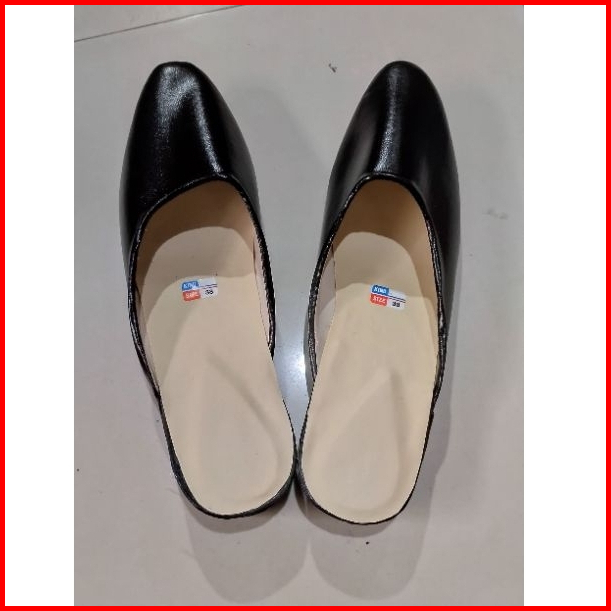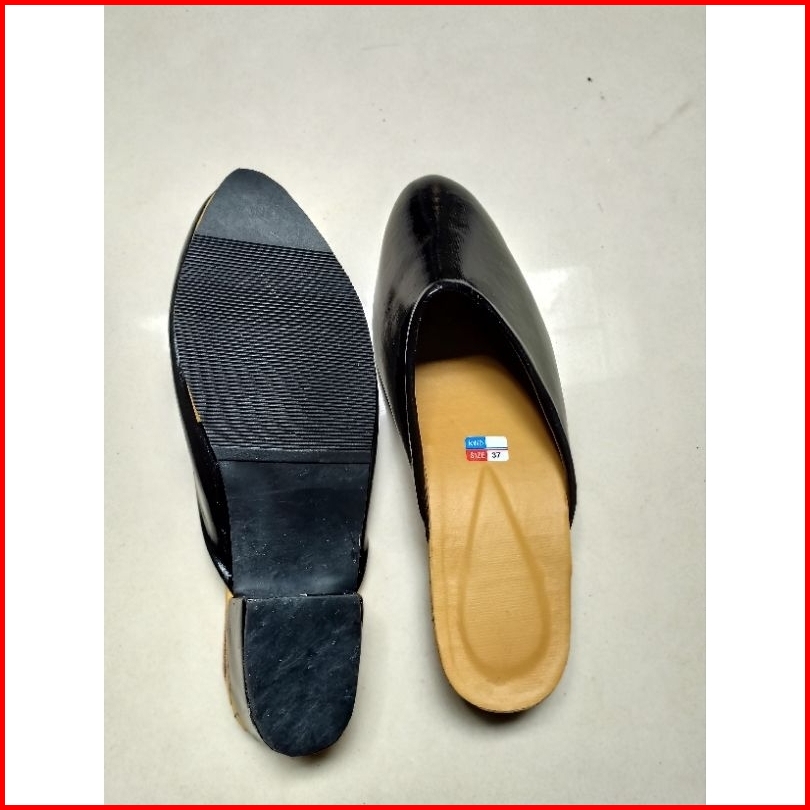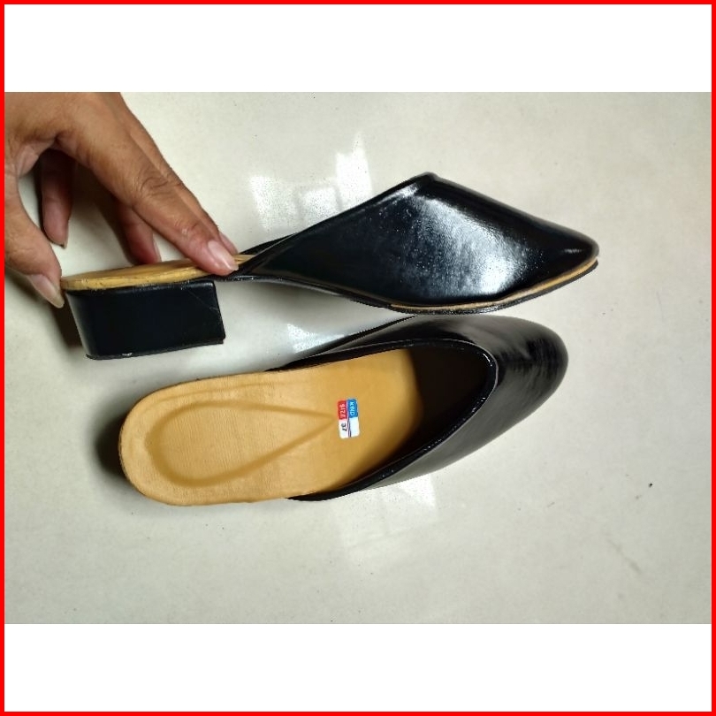 Sendal Slop Cewek Dewasa Kulit Sintetis Hitam Hak 3cm