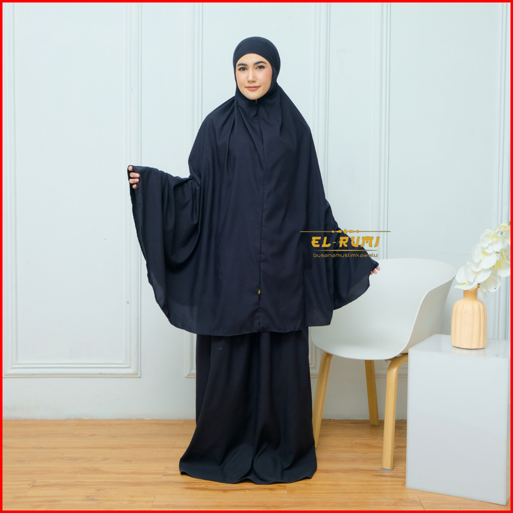 Elrumi - Mukena 2in1 Polos Dewasa Katun Premium Resleting Dagu