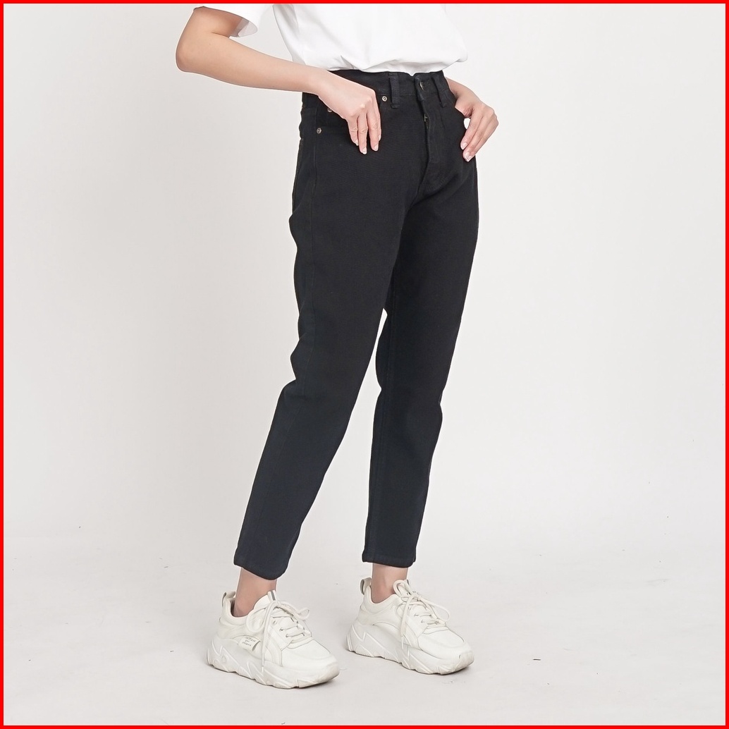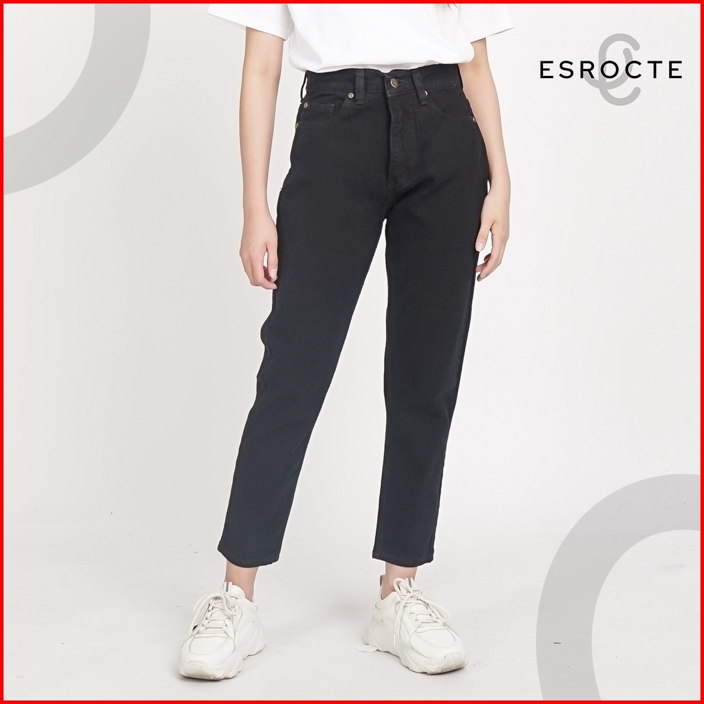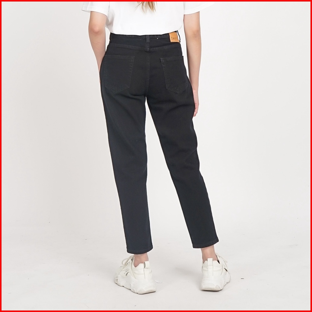 Esrocte Celana Rubber Boyfriend High Waist Jeans Wanita P31 - Hitam 26-38