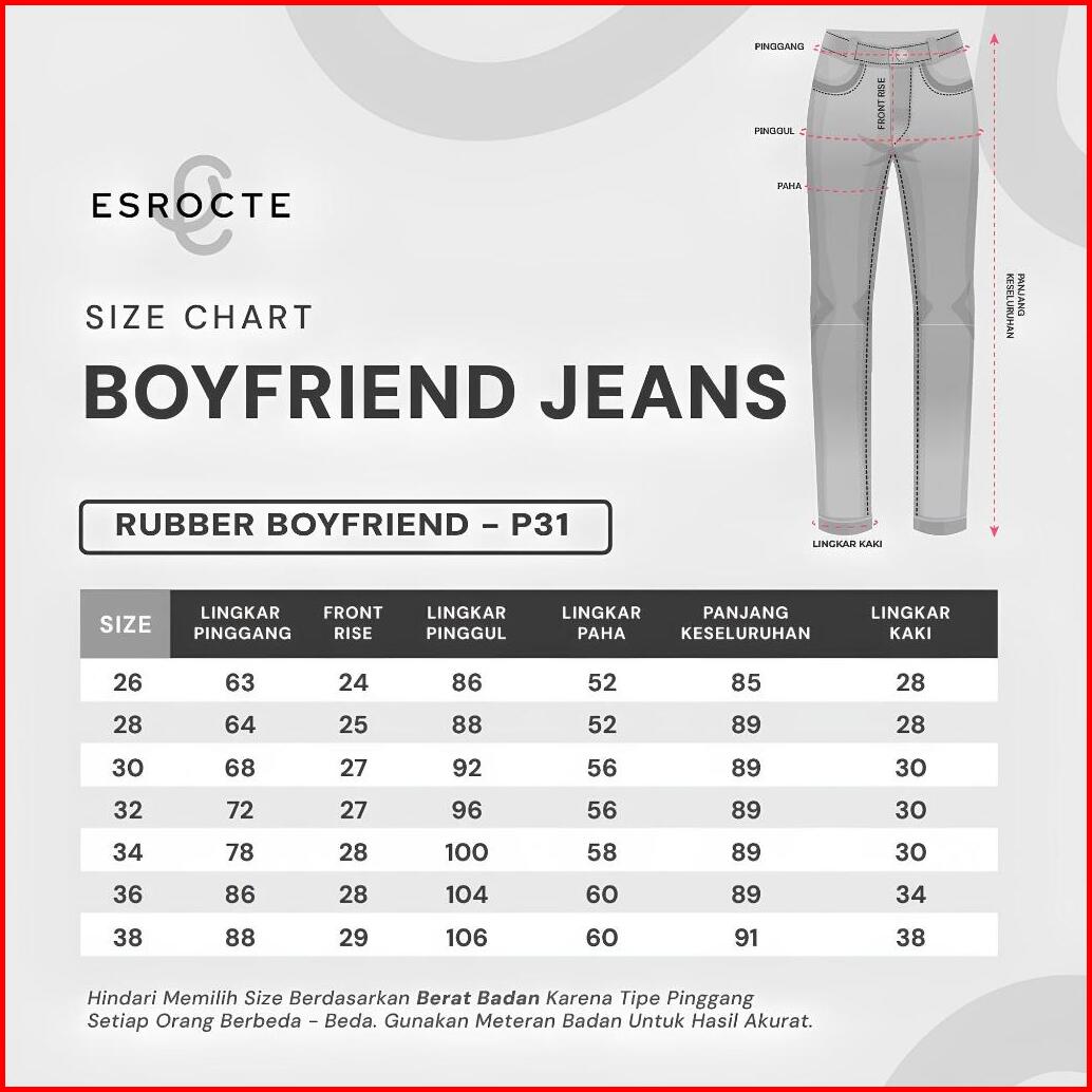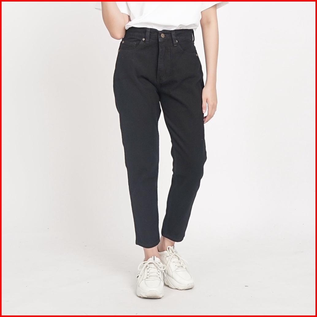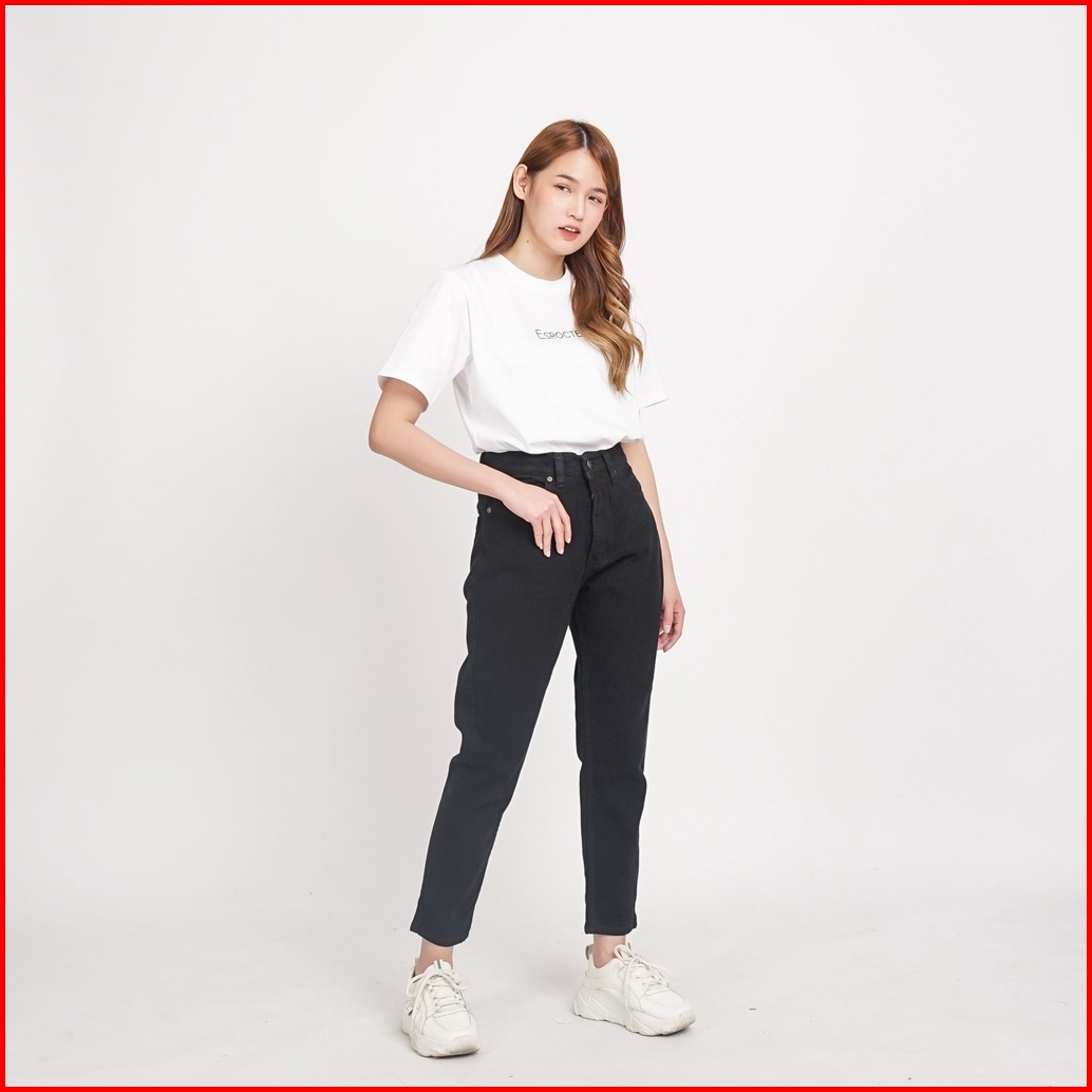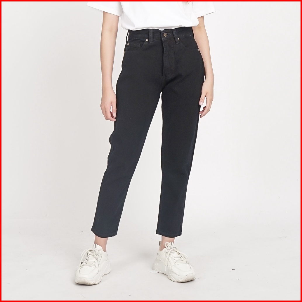 Esrocte Celana Rubber Boyfriend High Waist Jeans Wanita P31 - Hitam 26-38