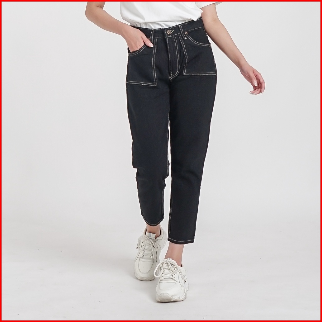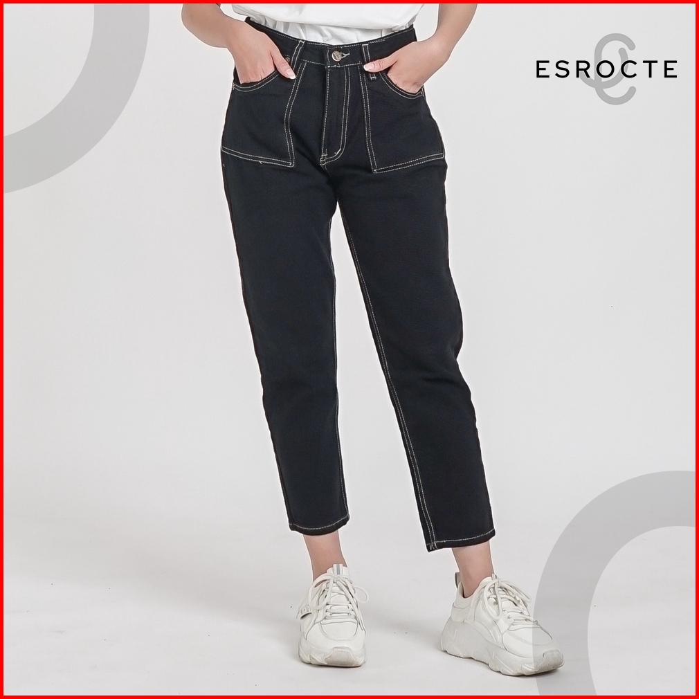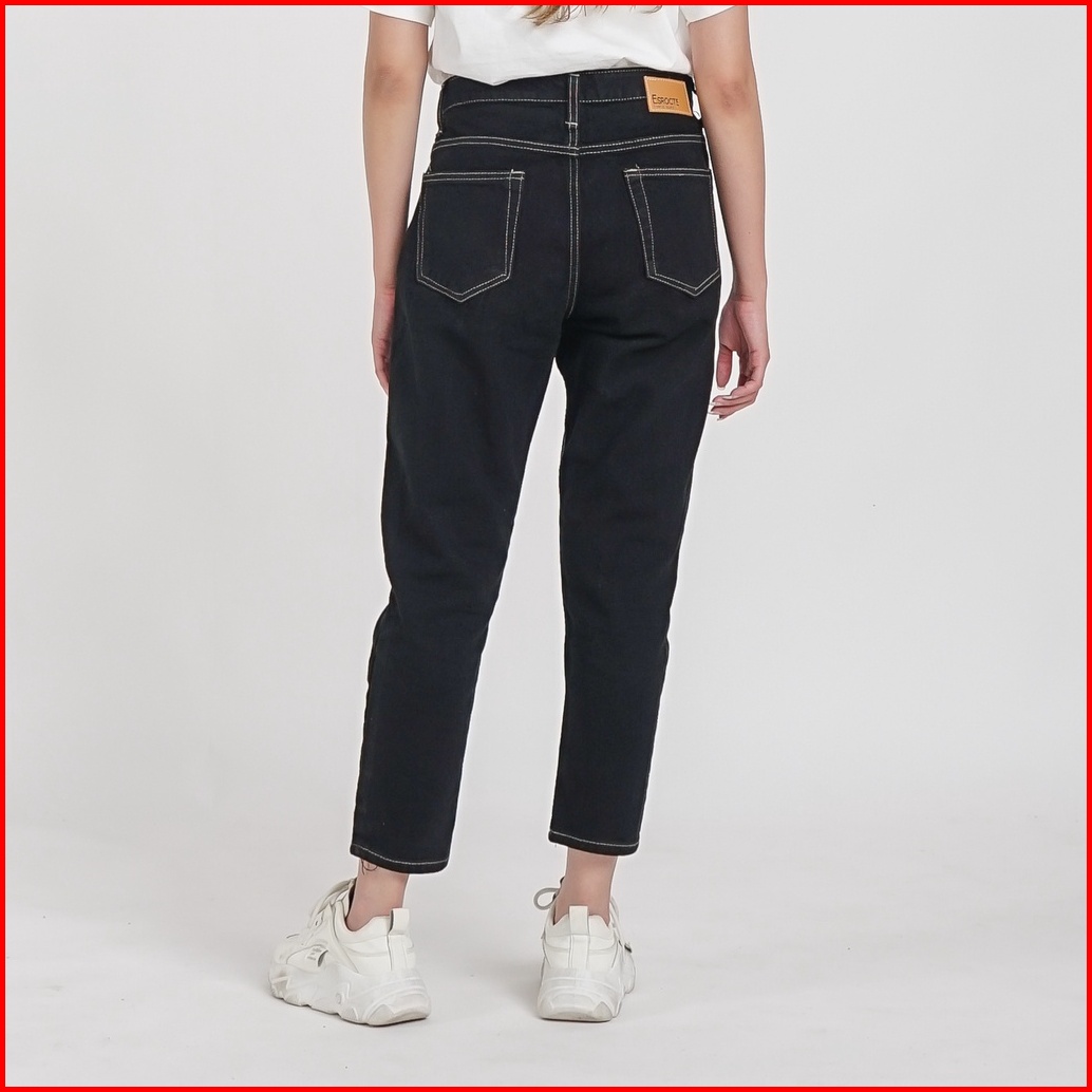 Esrocte Celana Boyfriend Pocket High Waist Jeans Wanita P24 - Hitam 26-38