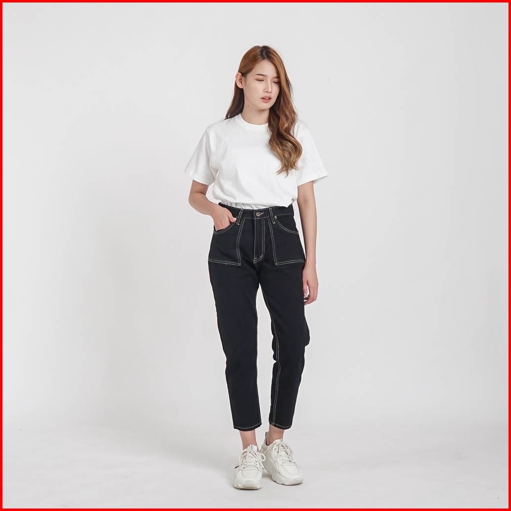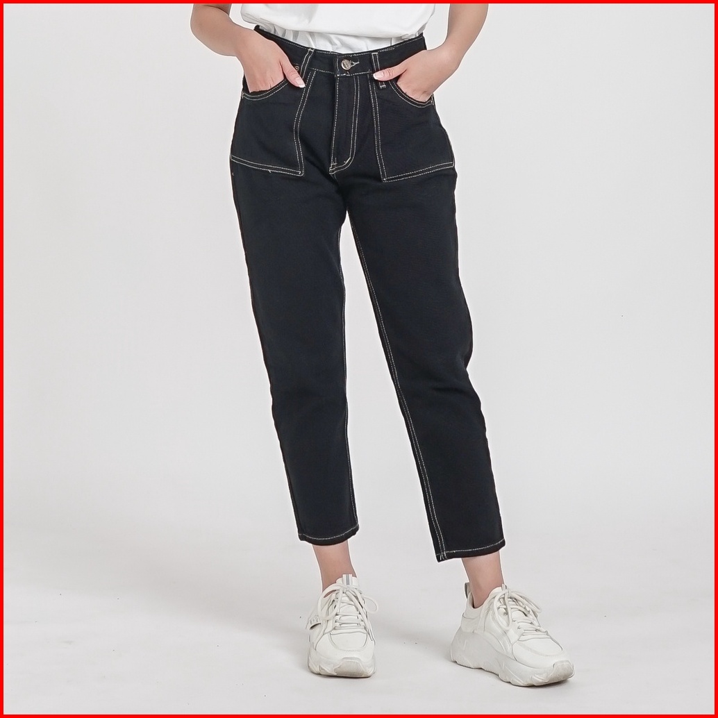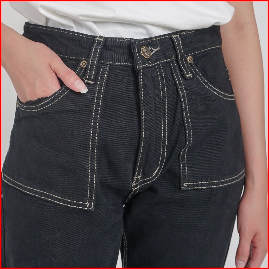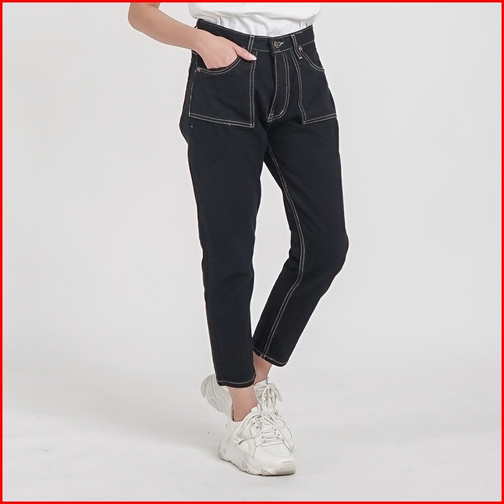 Esrocte Celana Boyfriend Pocket High Waist Jeans Wanita P24 - Hitam 26-38