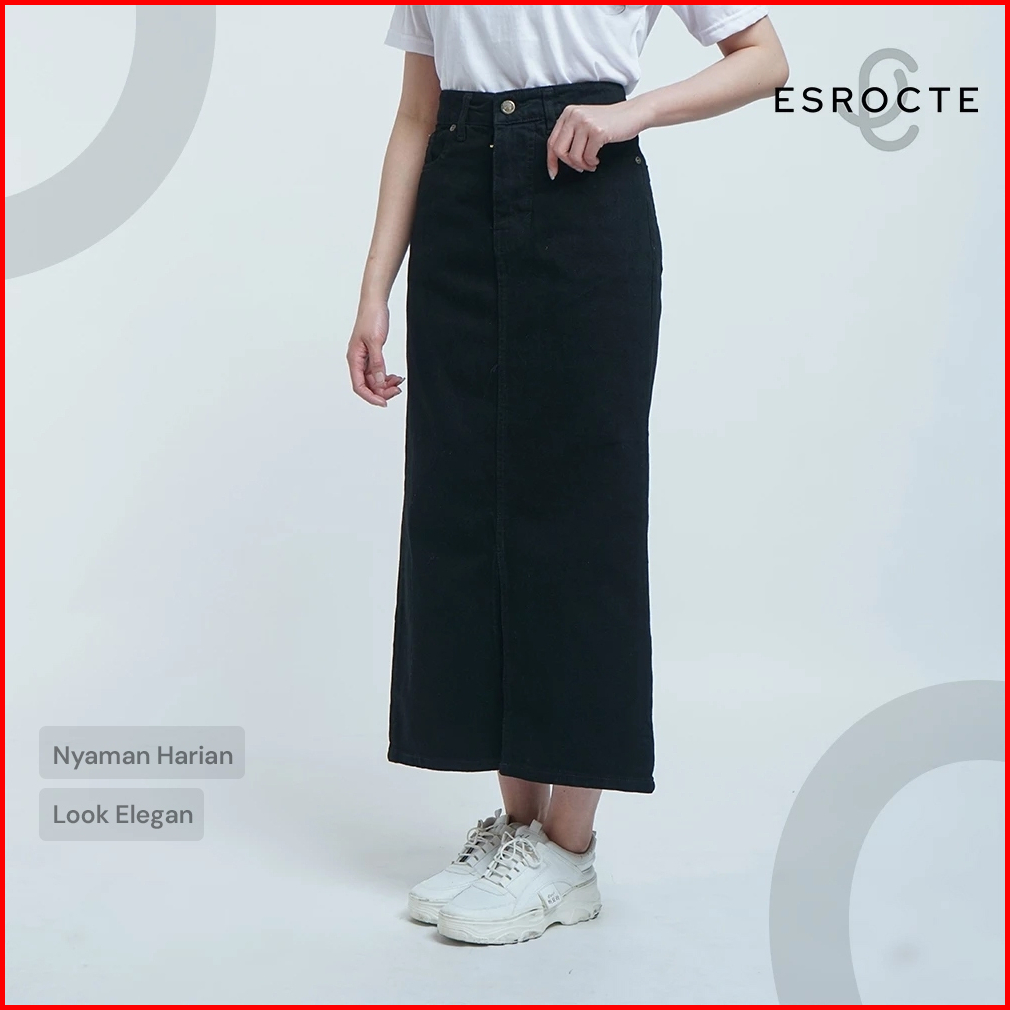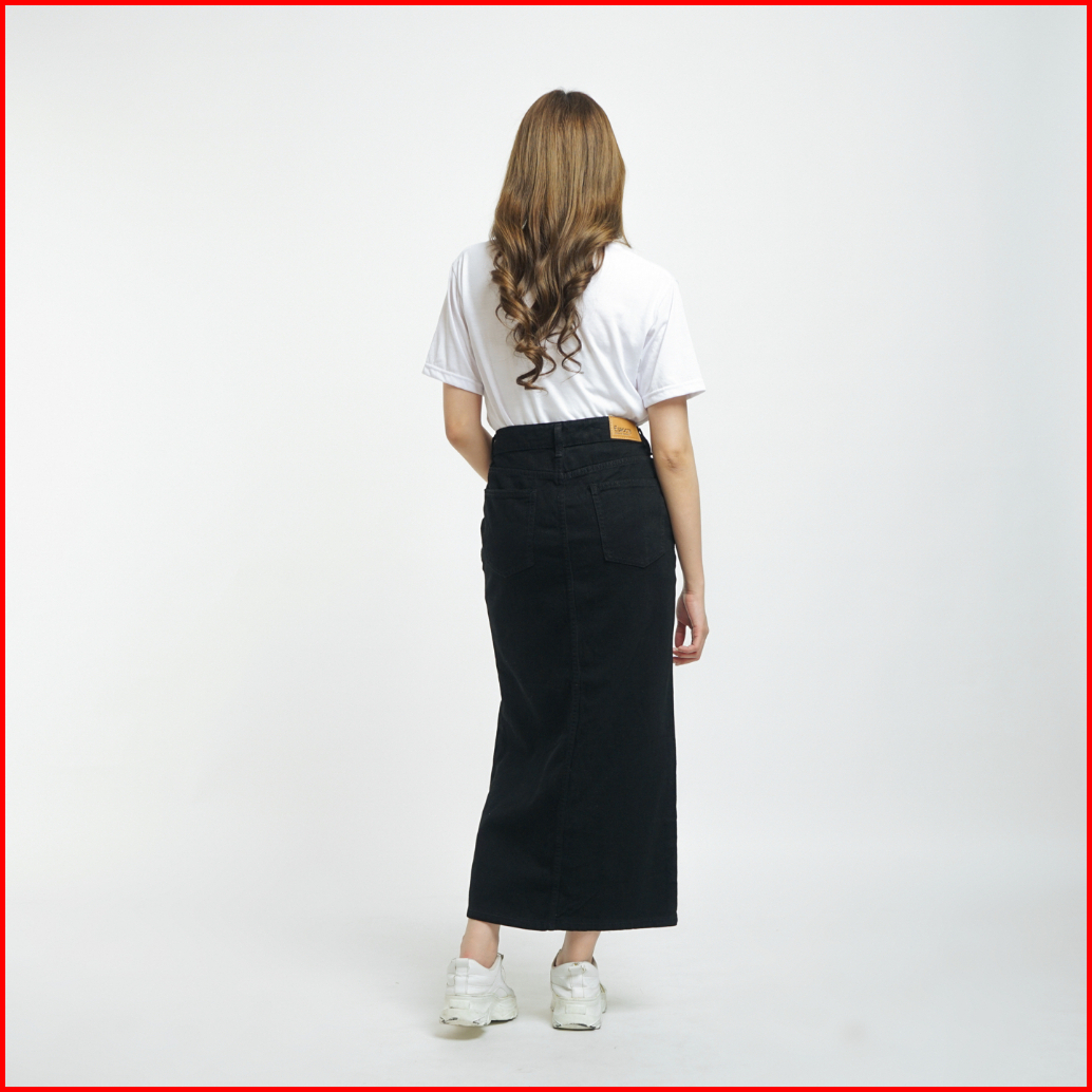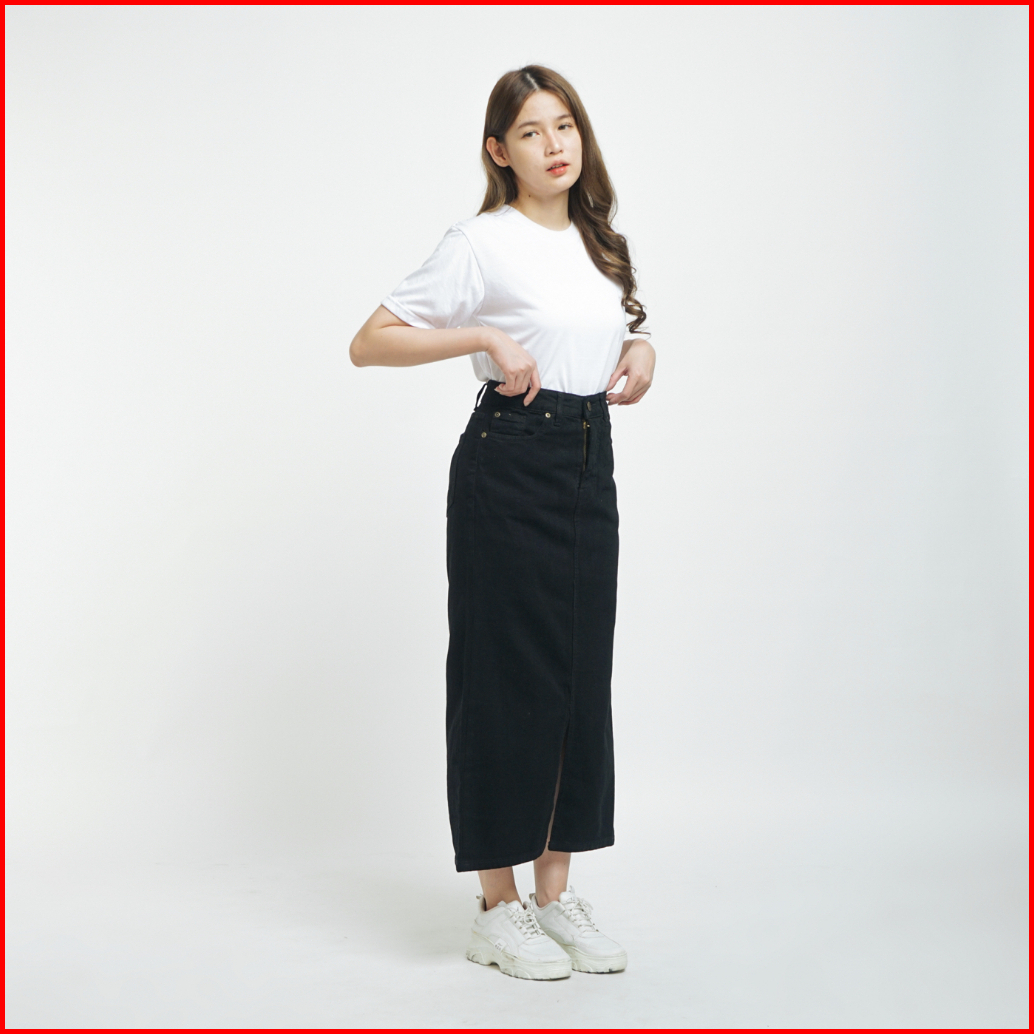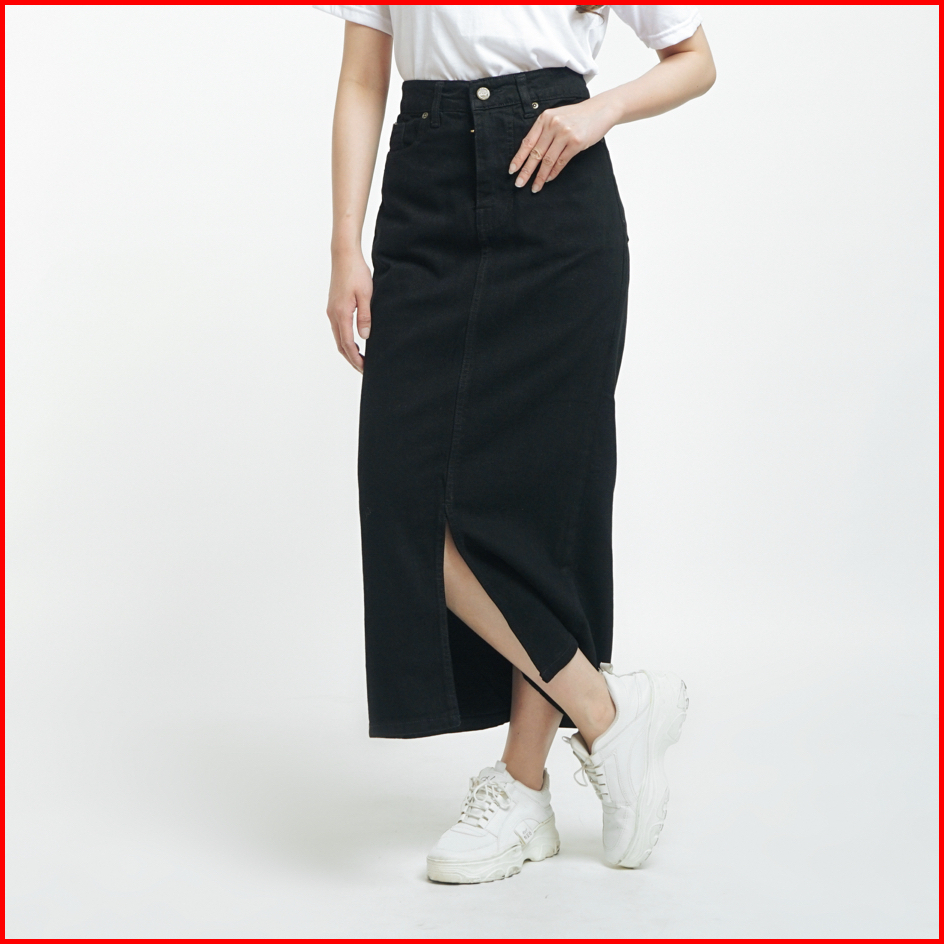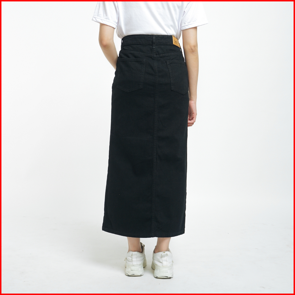 Esrocte Rok Skirt Mid Waist Panjang Jeans Wanita P65 - Hitam 26-38