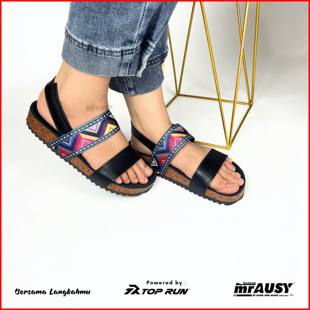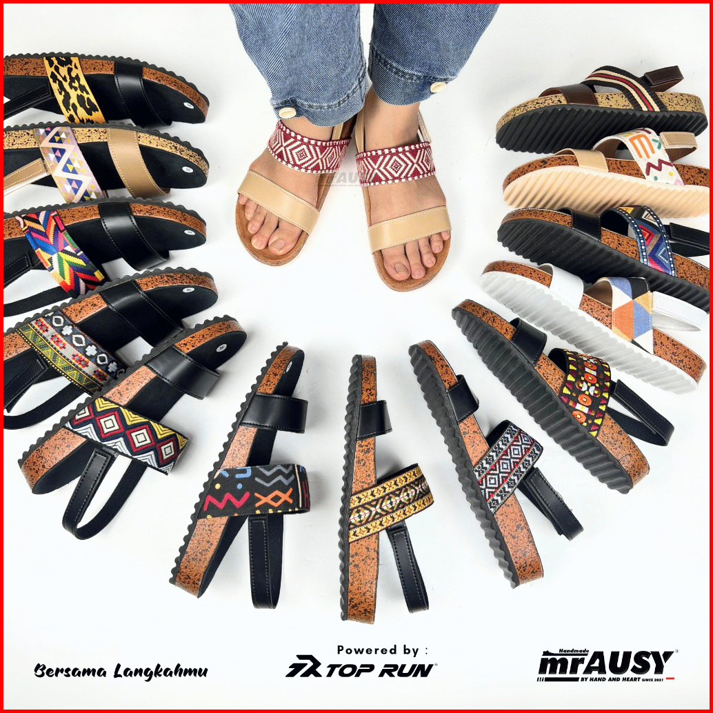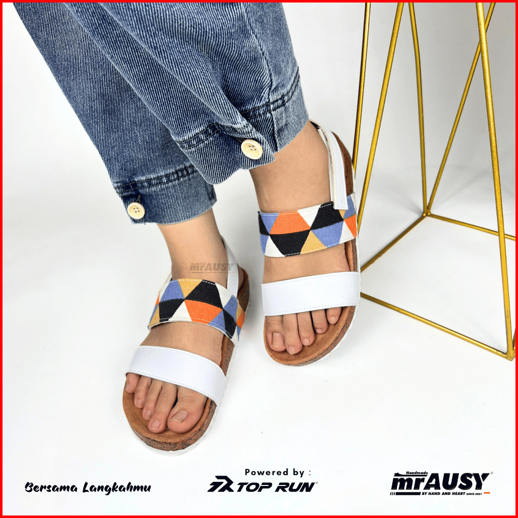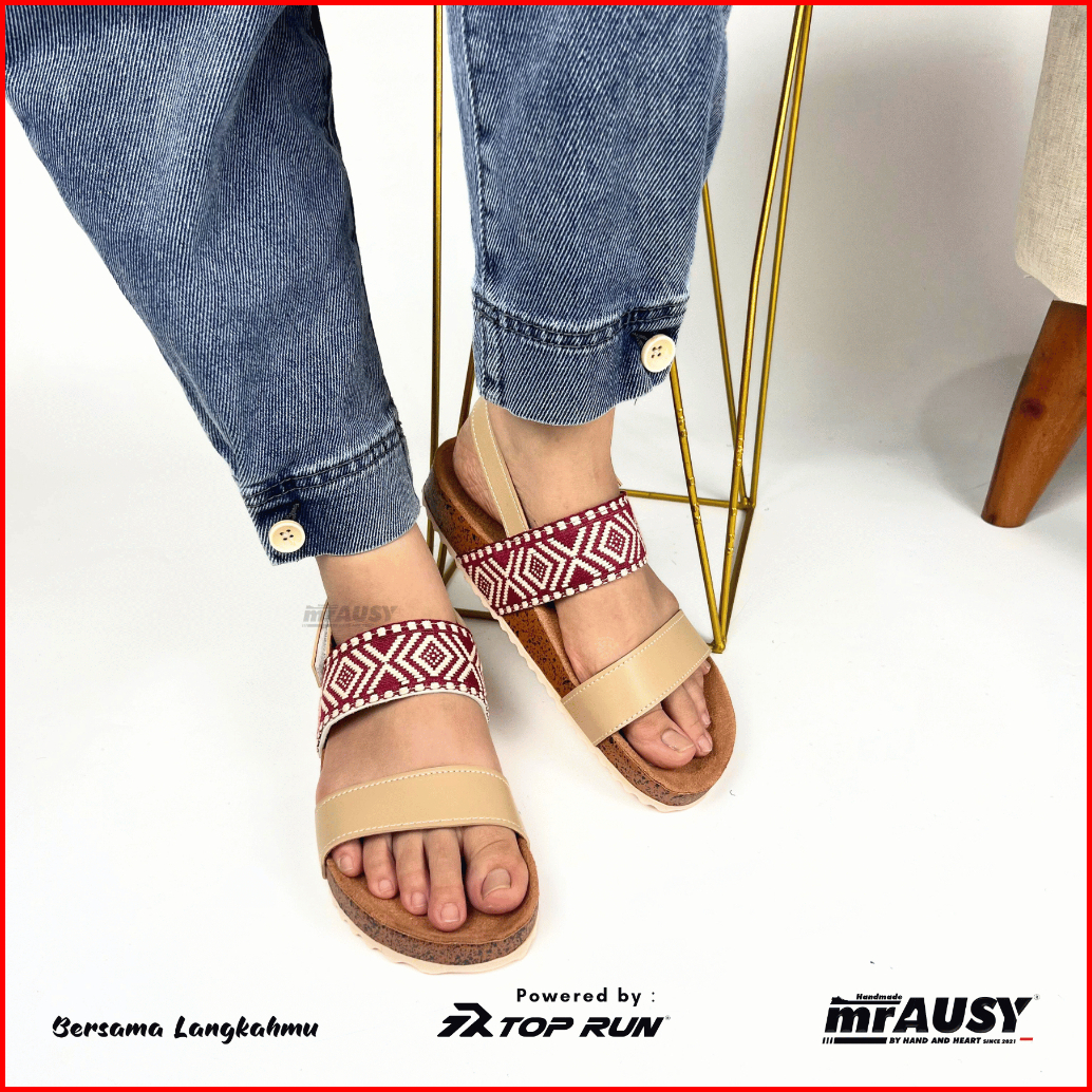 Sandal Cewek Wanita Birken Selop Motif Mrausy Etnik Slop