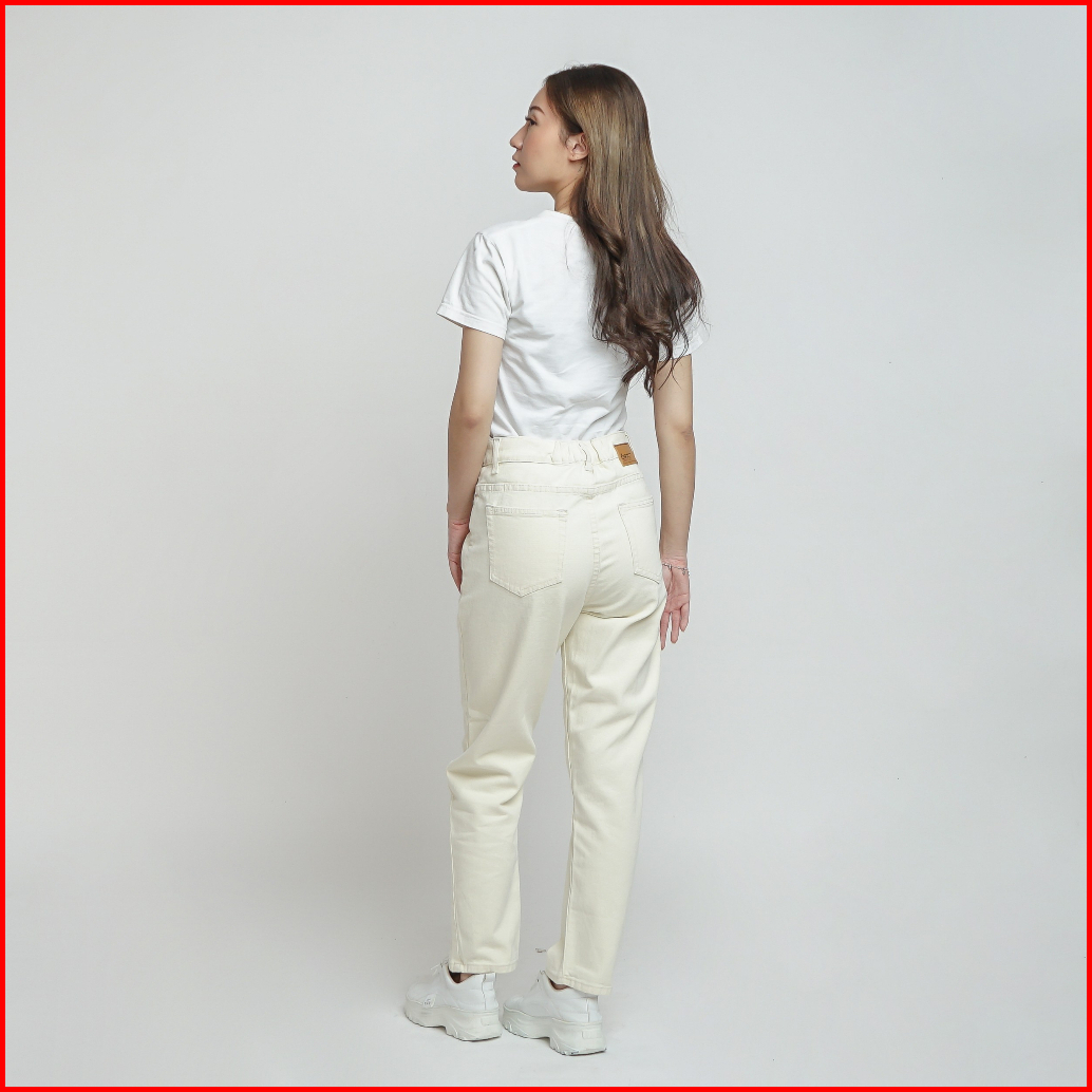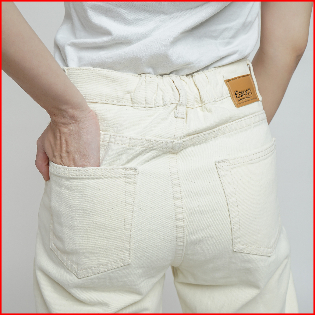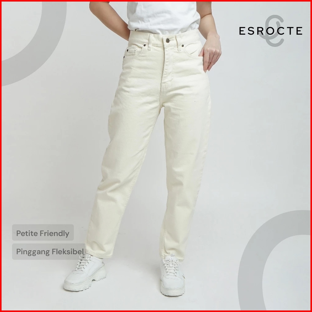 Esrocte Rhea Pants Celana Mom Jeans Dengan Karet Belakang High-waist Wanita Broken White 2638