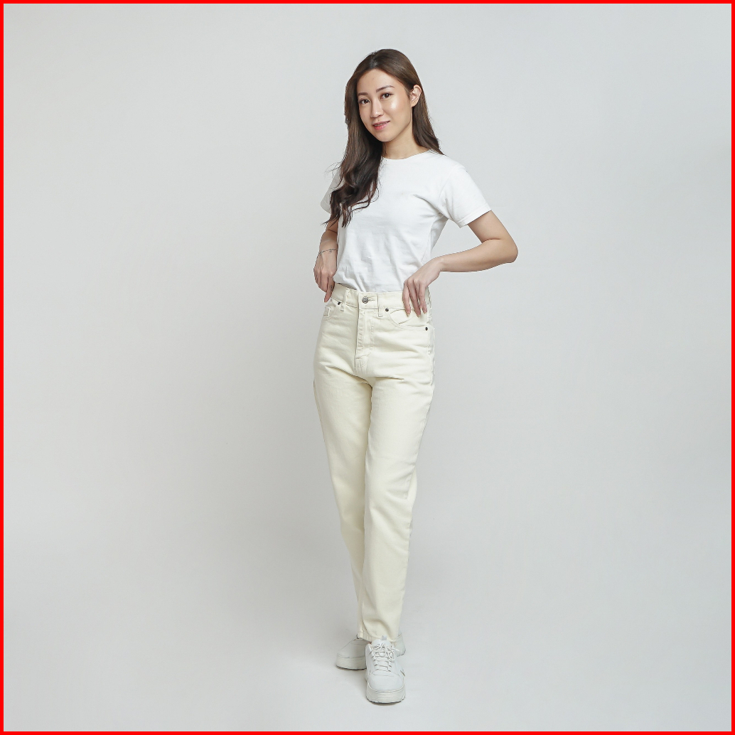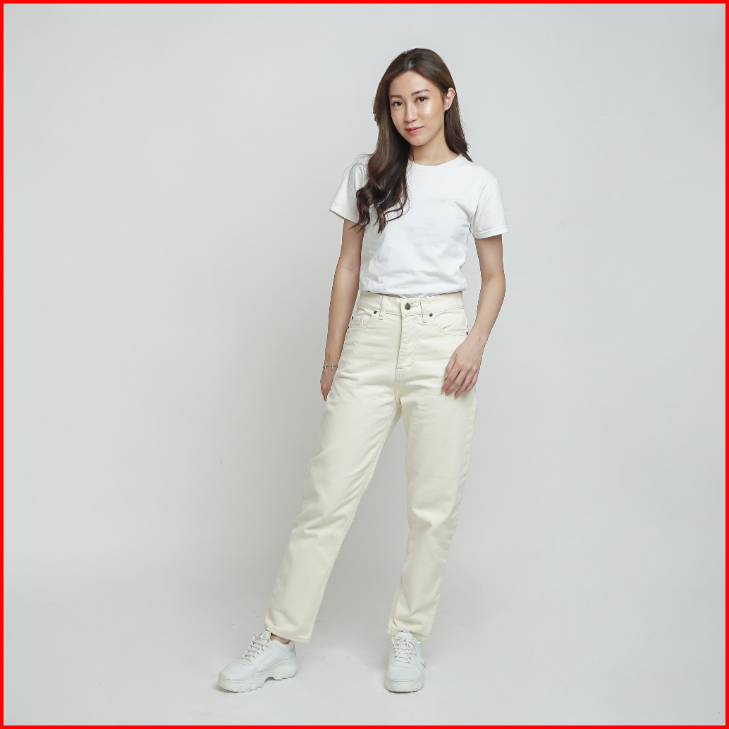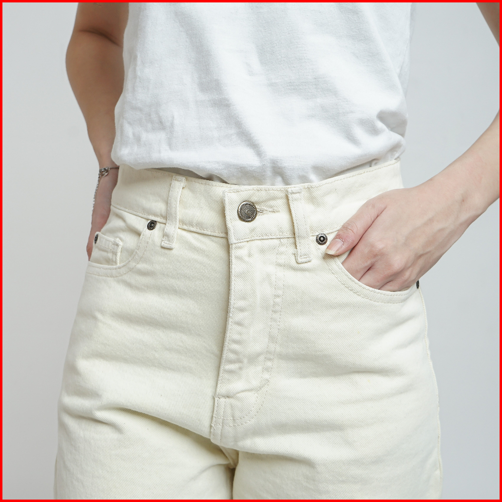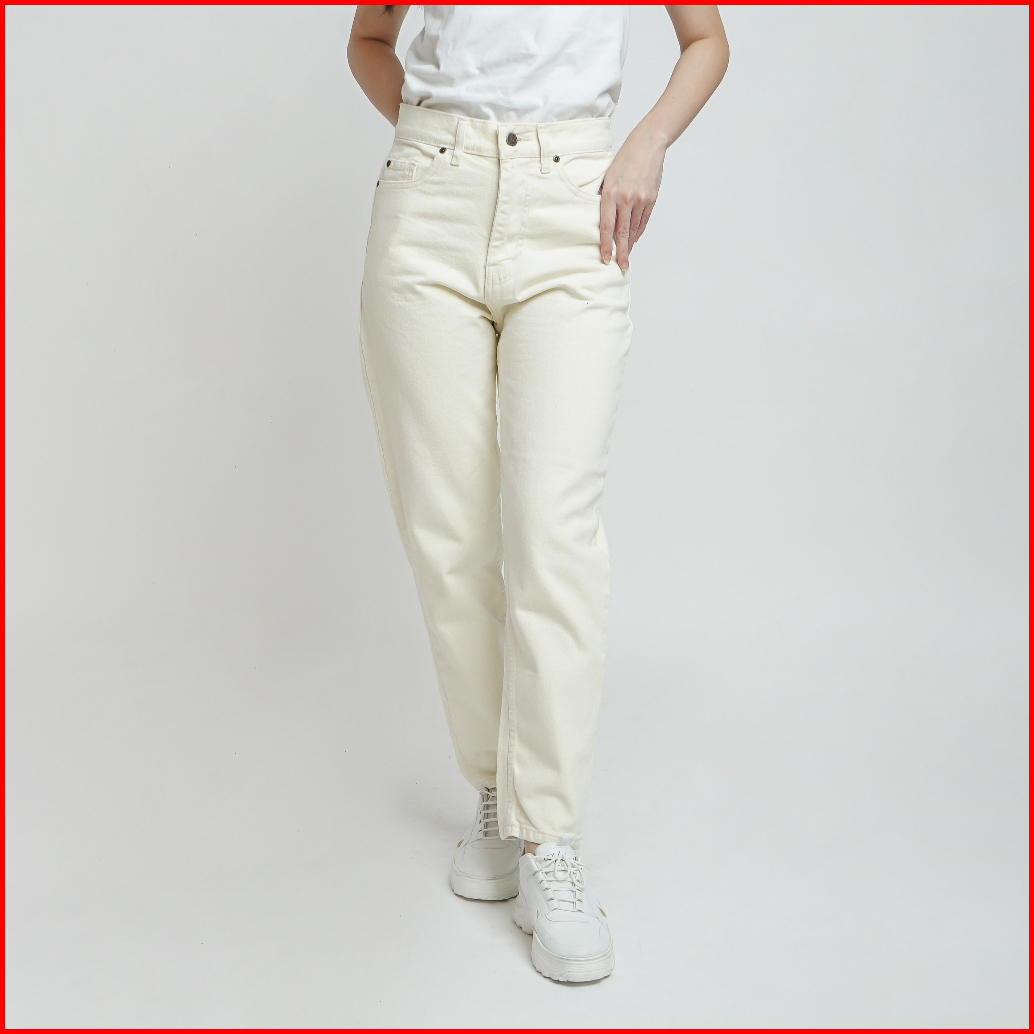 Esrocte Rhea Pants Celana Mom Jeans Dengan Karet Belakang High-waist Wanita Broken White 2638