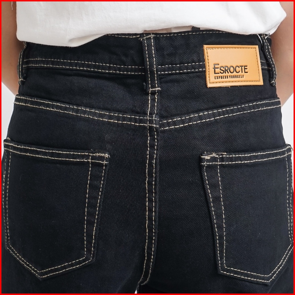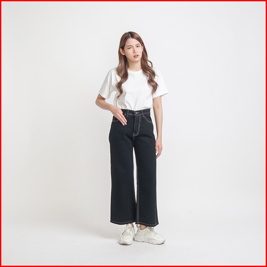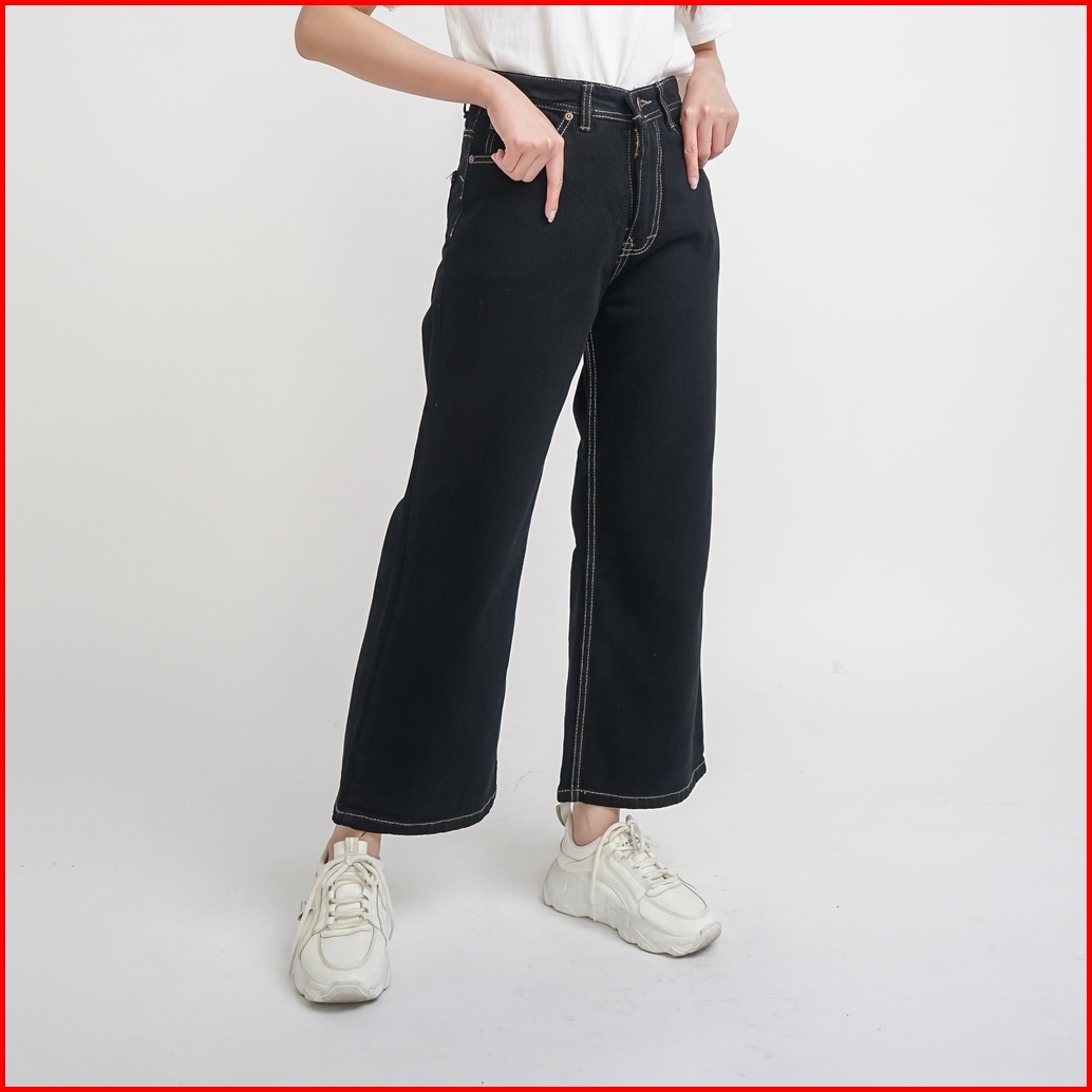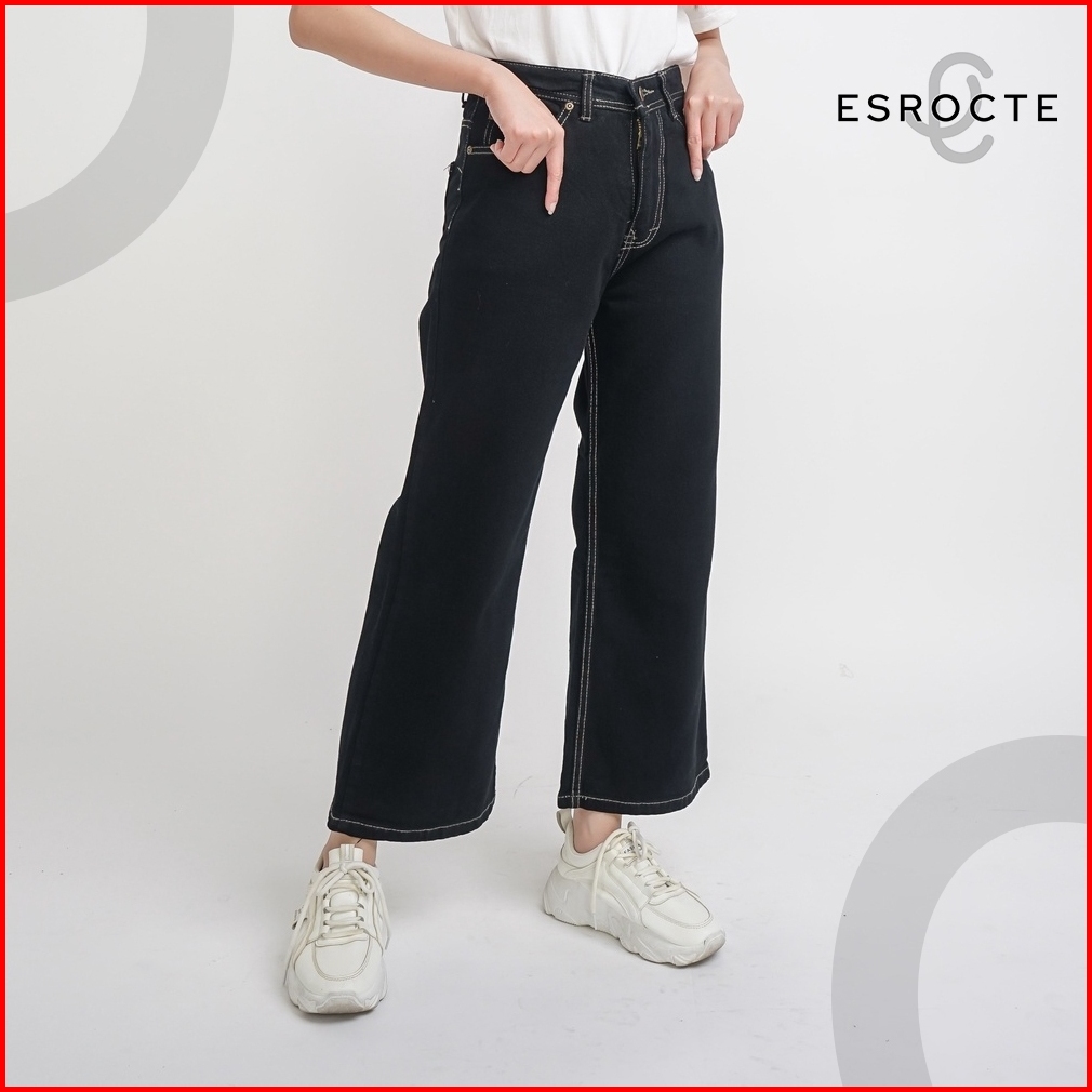Esrocte Celana Kulot High Waist Jeans Wanita P01 - Hitam Clash 26-38