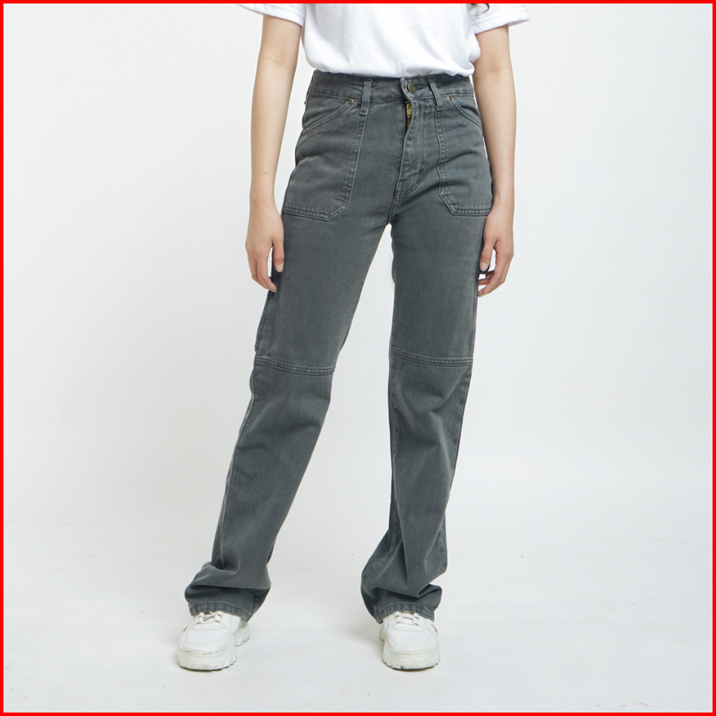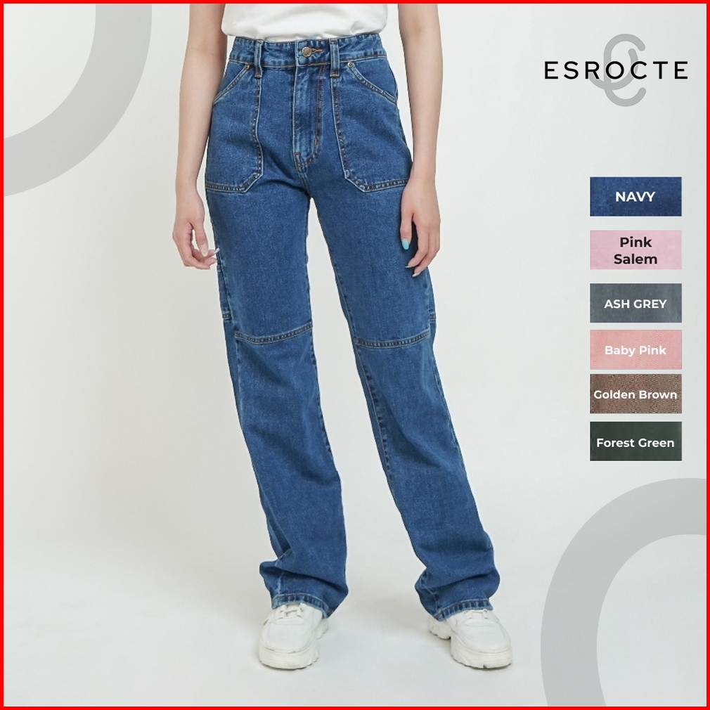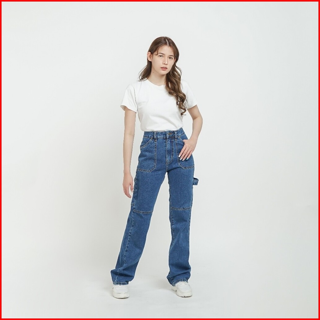 Esrocte Celana Loose Cargo Carpenter High Waist Jeans Wanita P64 - 26-38 001
