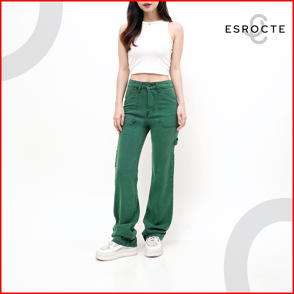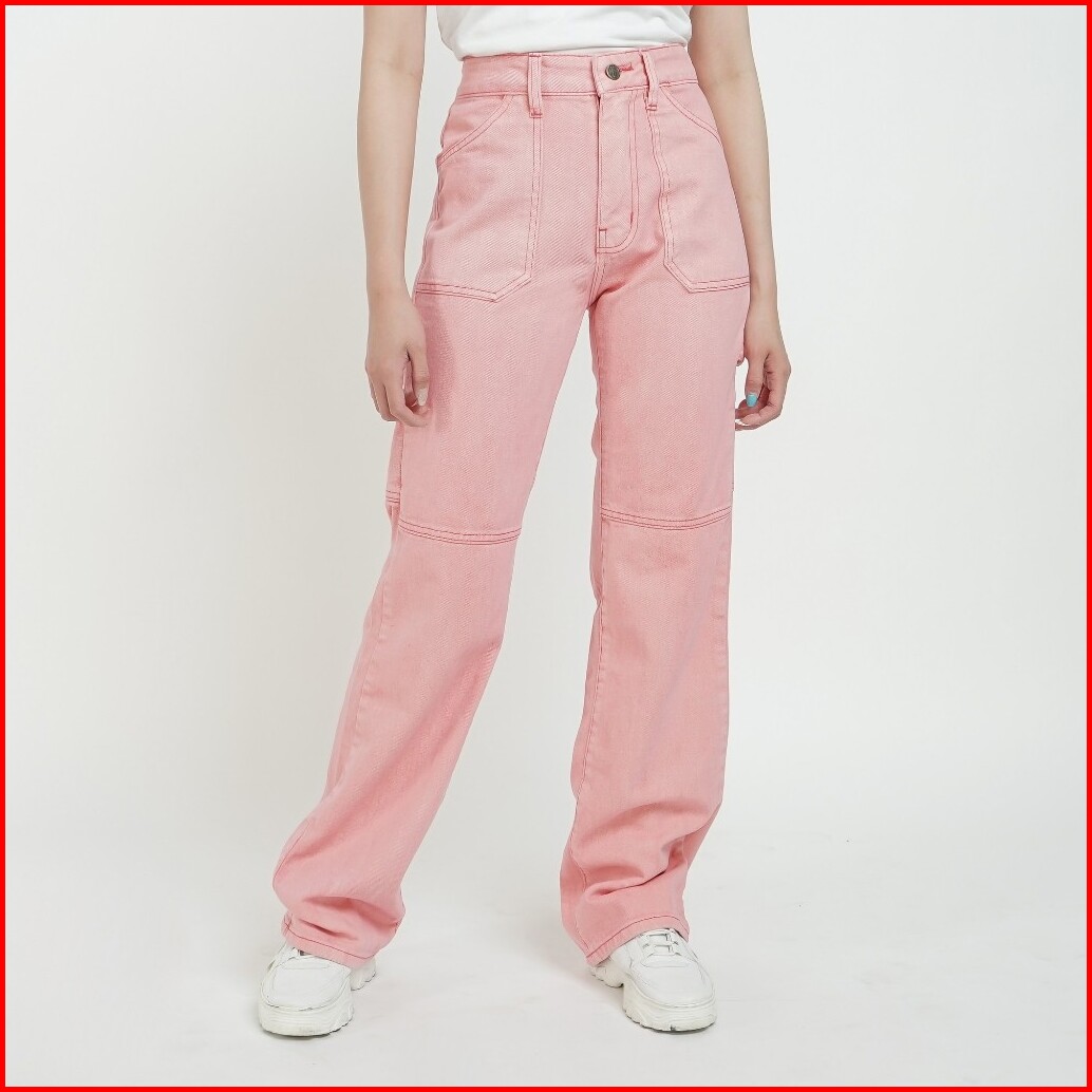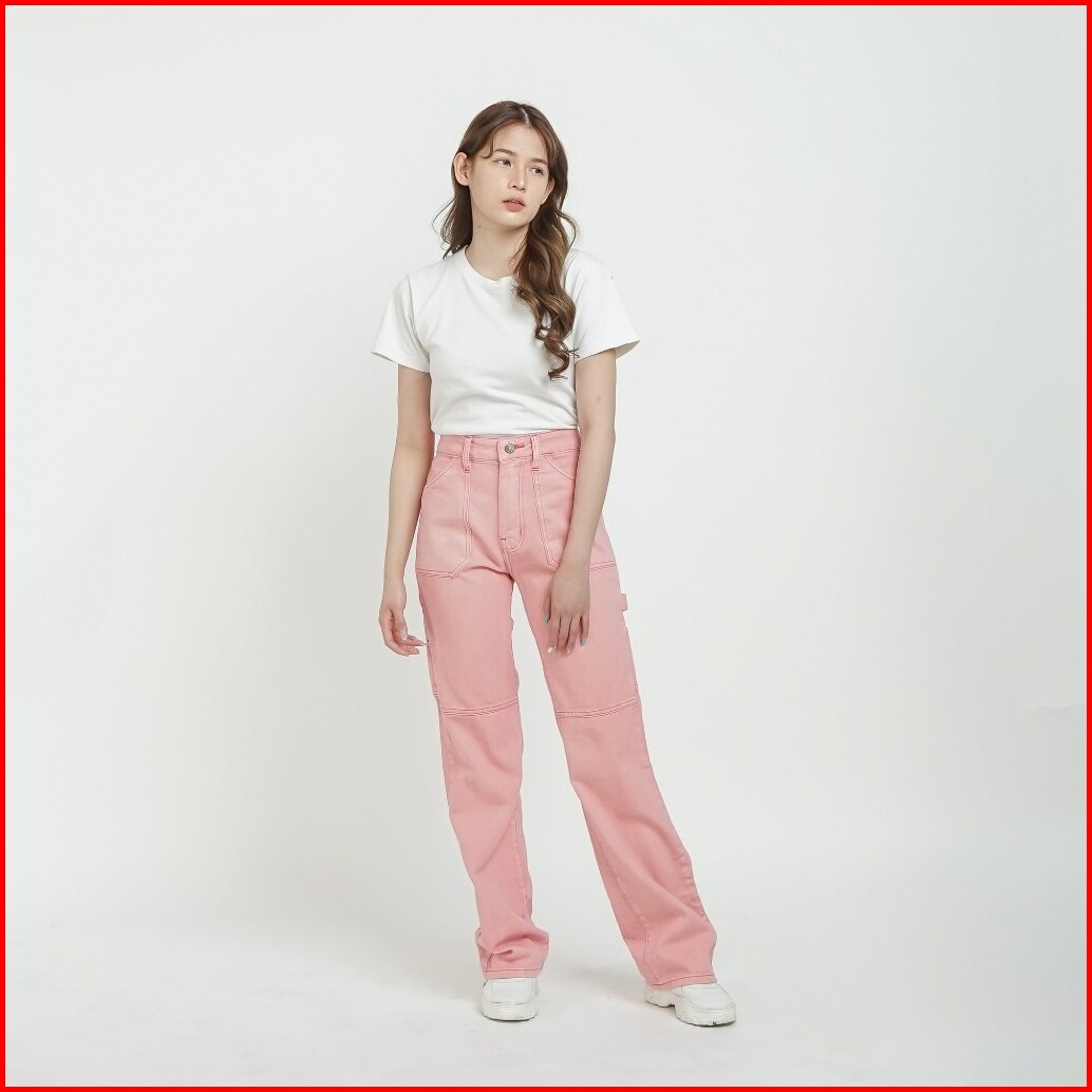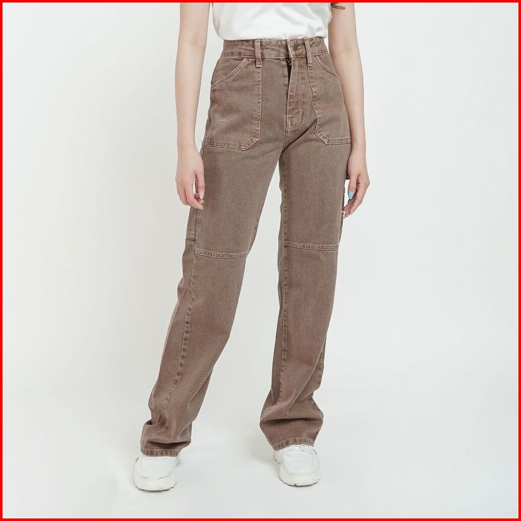 Esrocte Celana Loose Cargo Carpenter High Waist Jeans Wanita P64 - 26-38 001