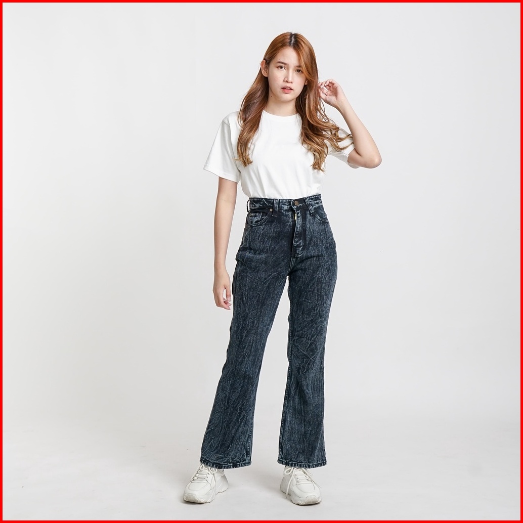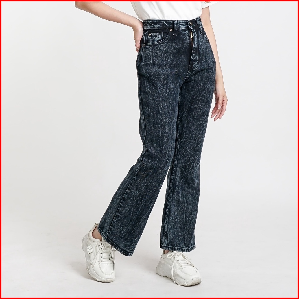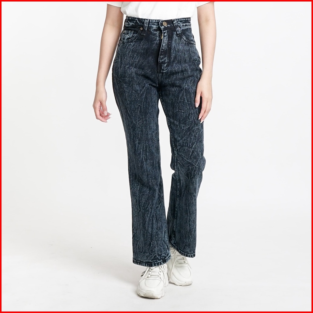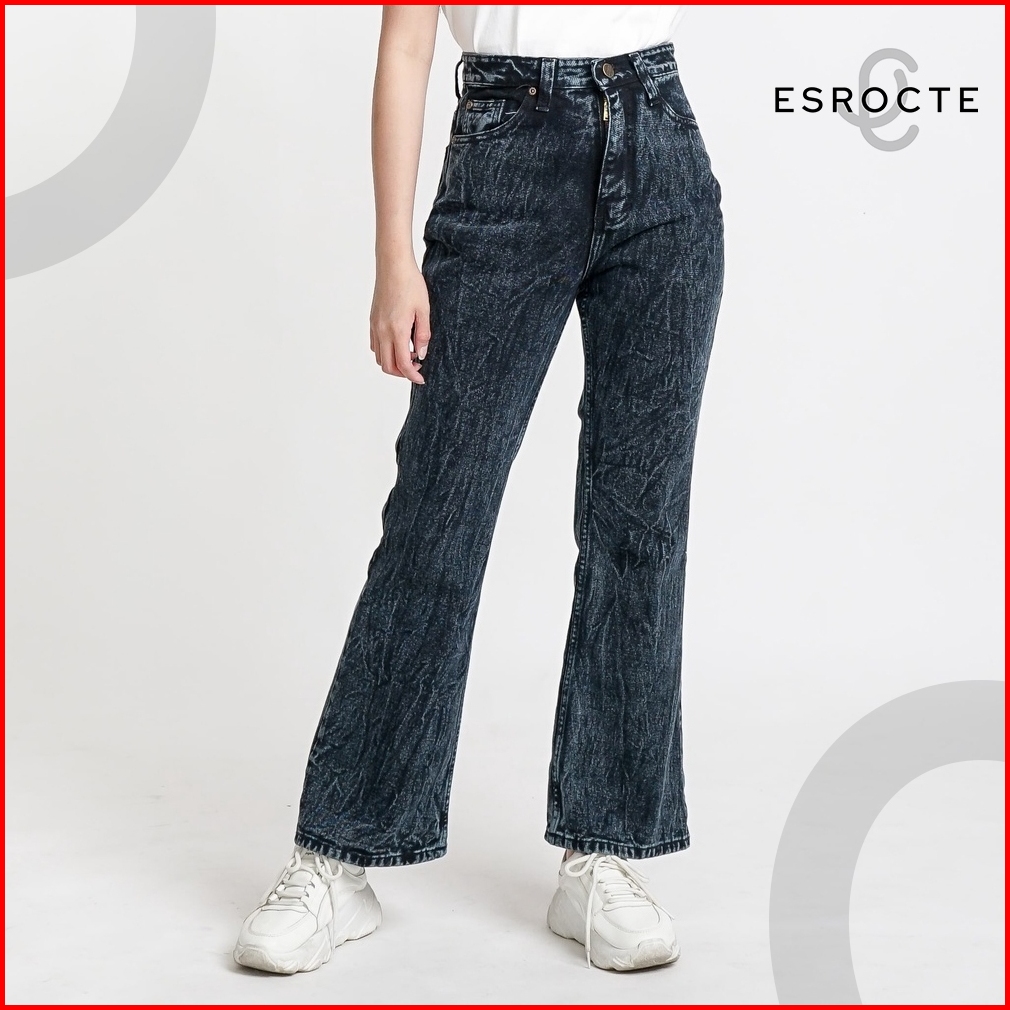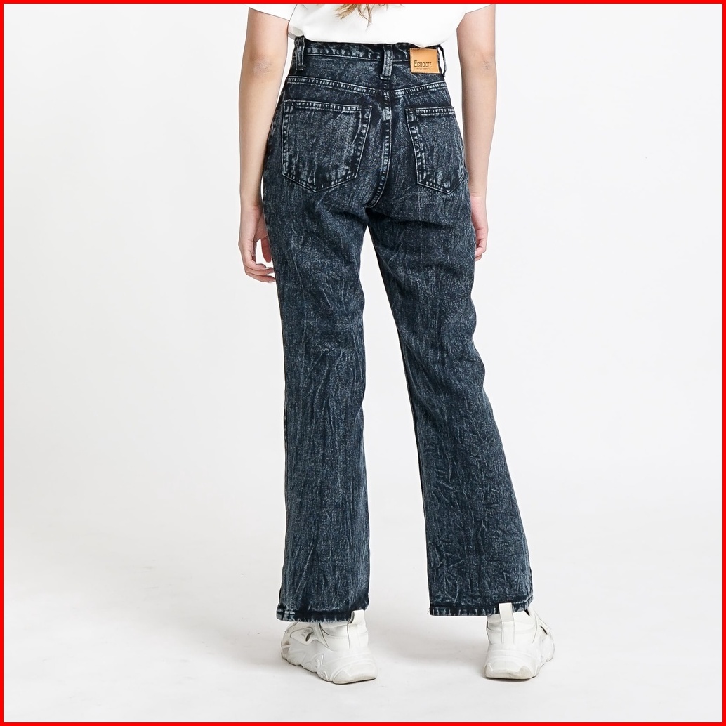 Esrocte Asha Pants Celana Cutbray Jeans High-waist Wanita Black Snow 2638