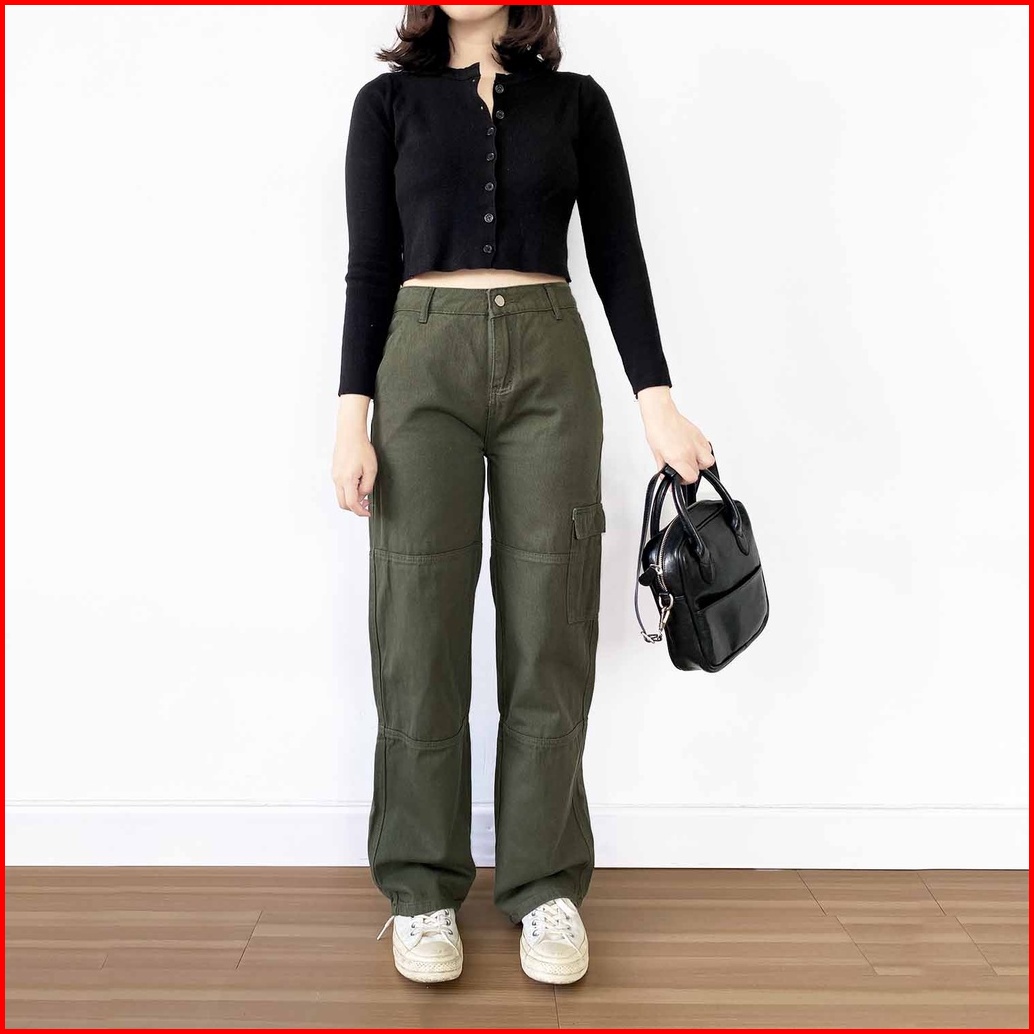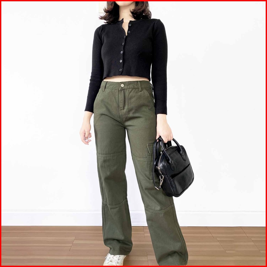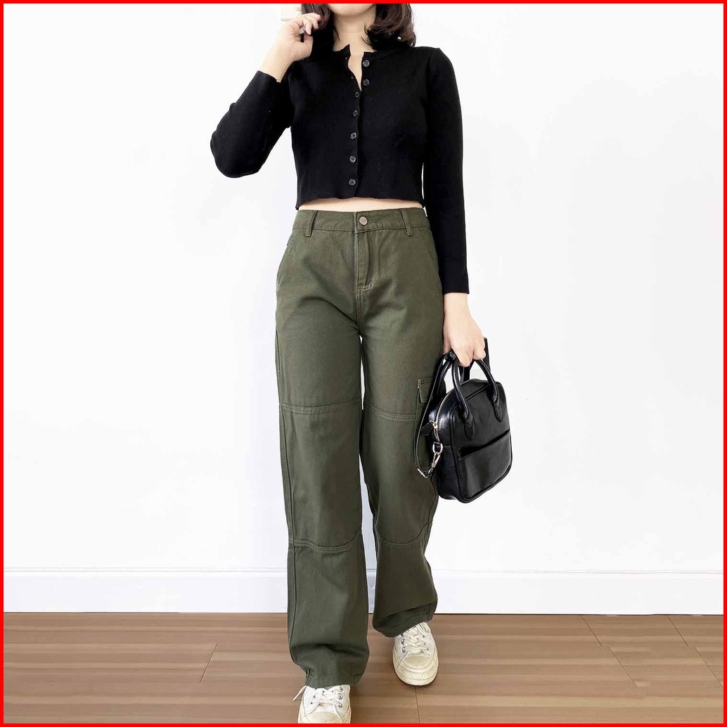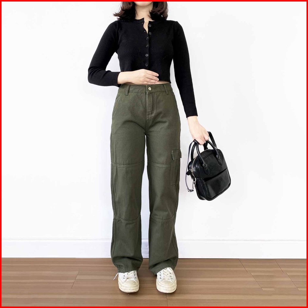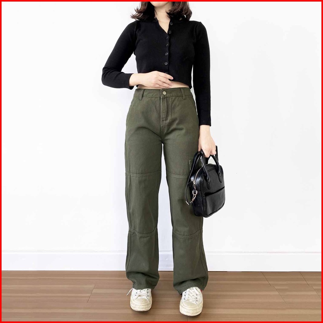 T138 18town Army Jeans Celana Jeans Panjang Model Longgar Kekinian High Waist Gaya Korea Murah Dan Nyaman