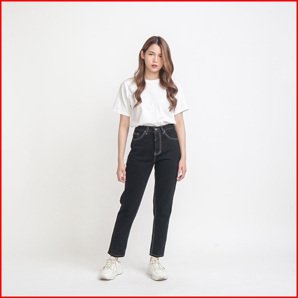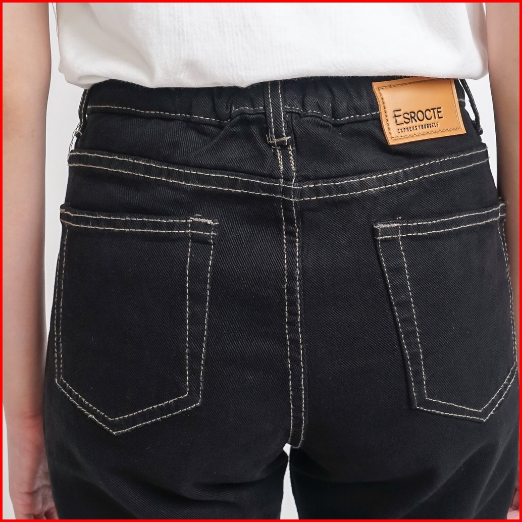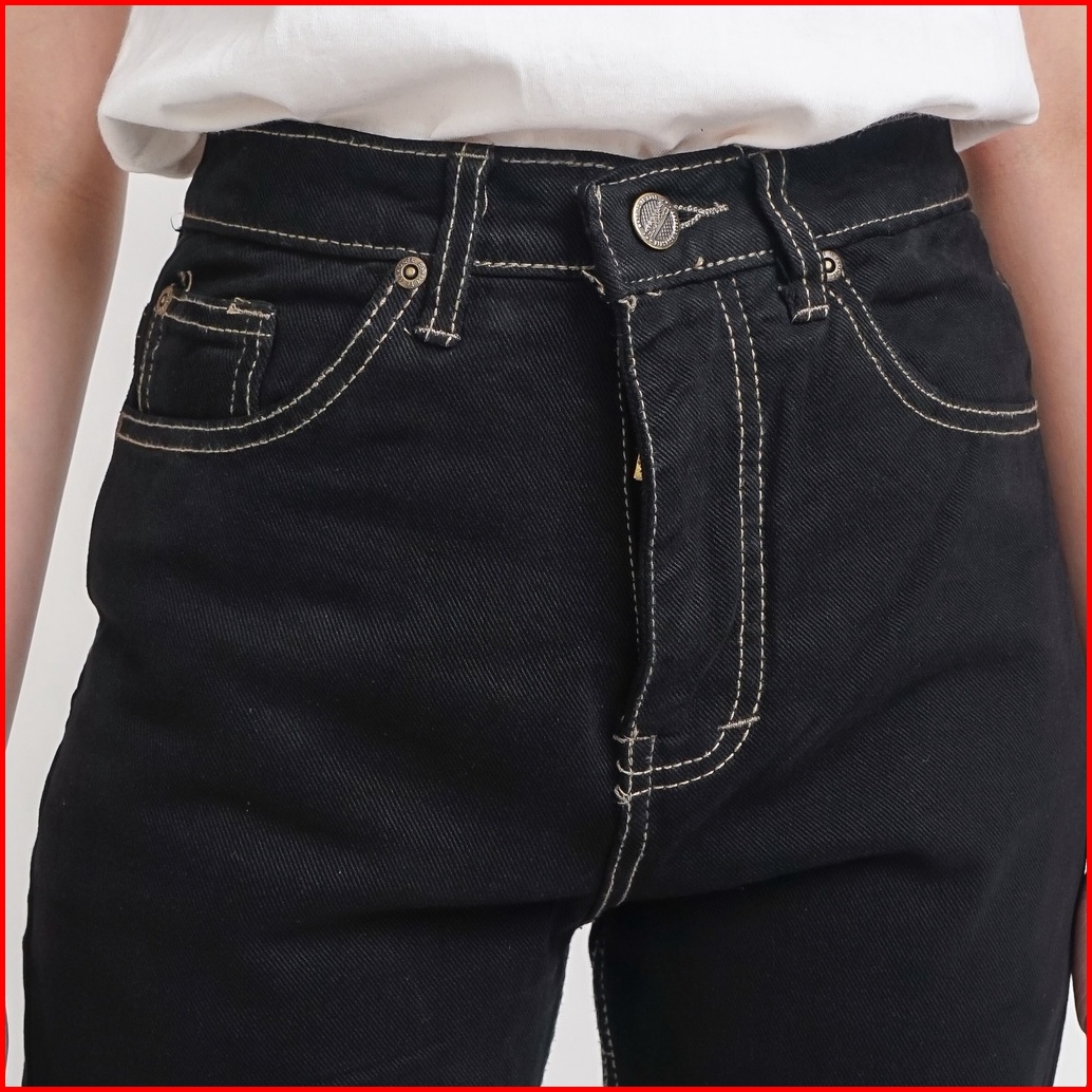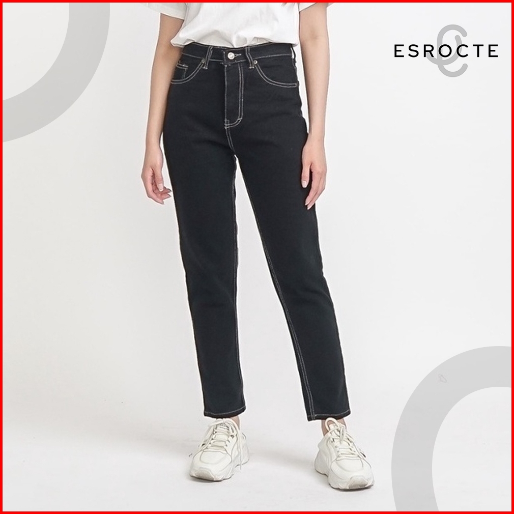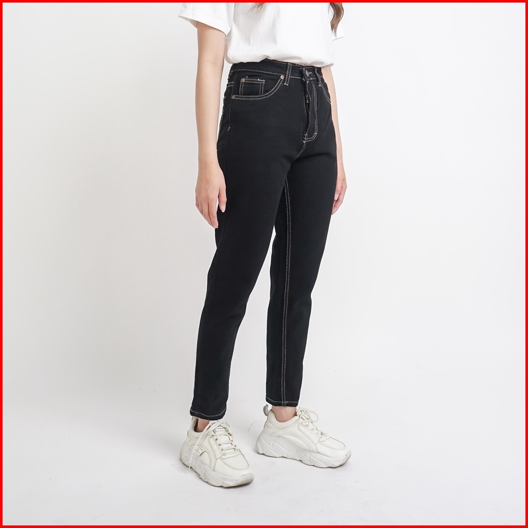 Esrocte Celana Rubber Boyfriend High Waist Jeans Wanita P31 - Hitam Clash 26-38
