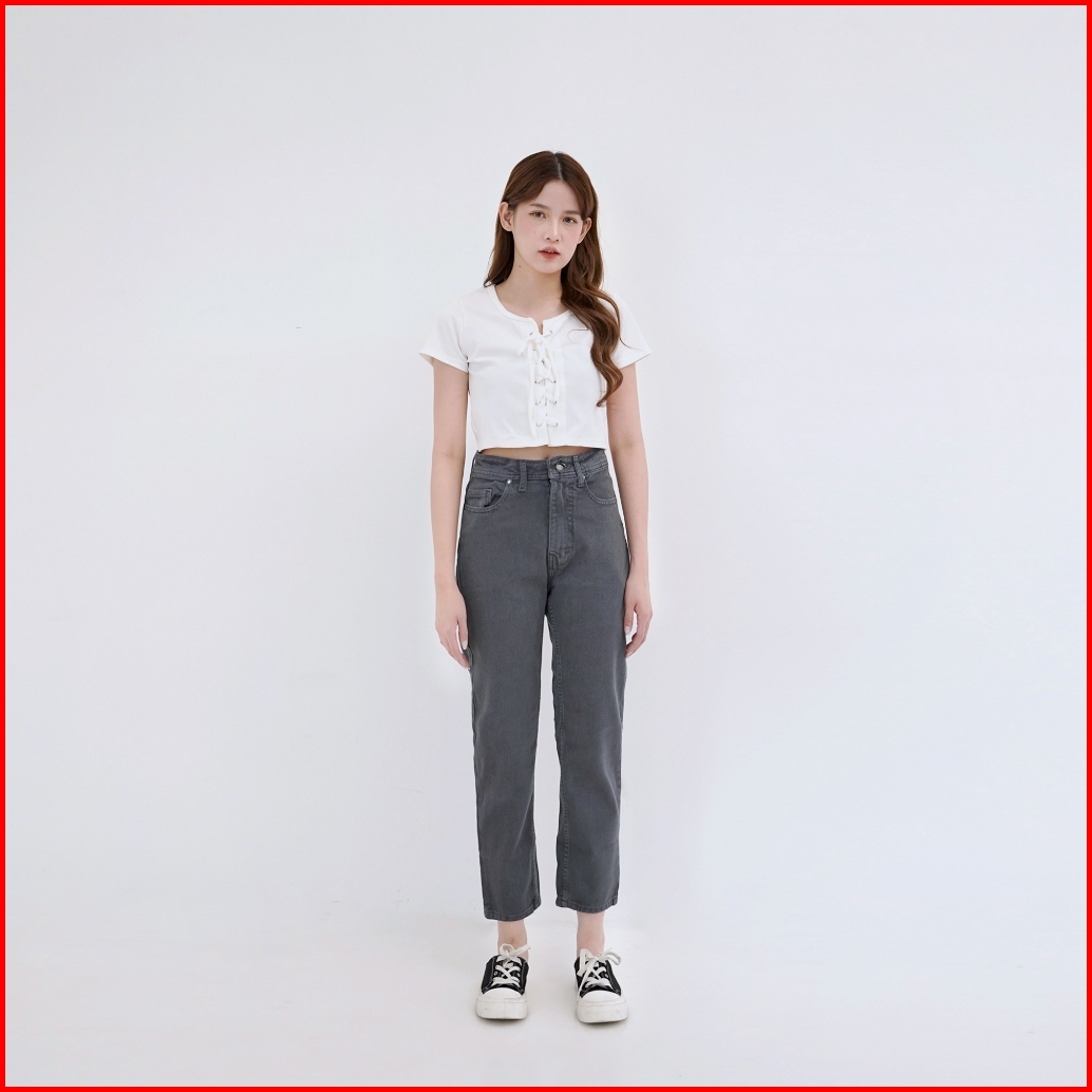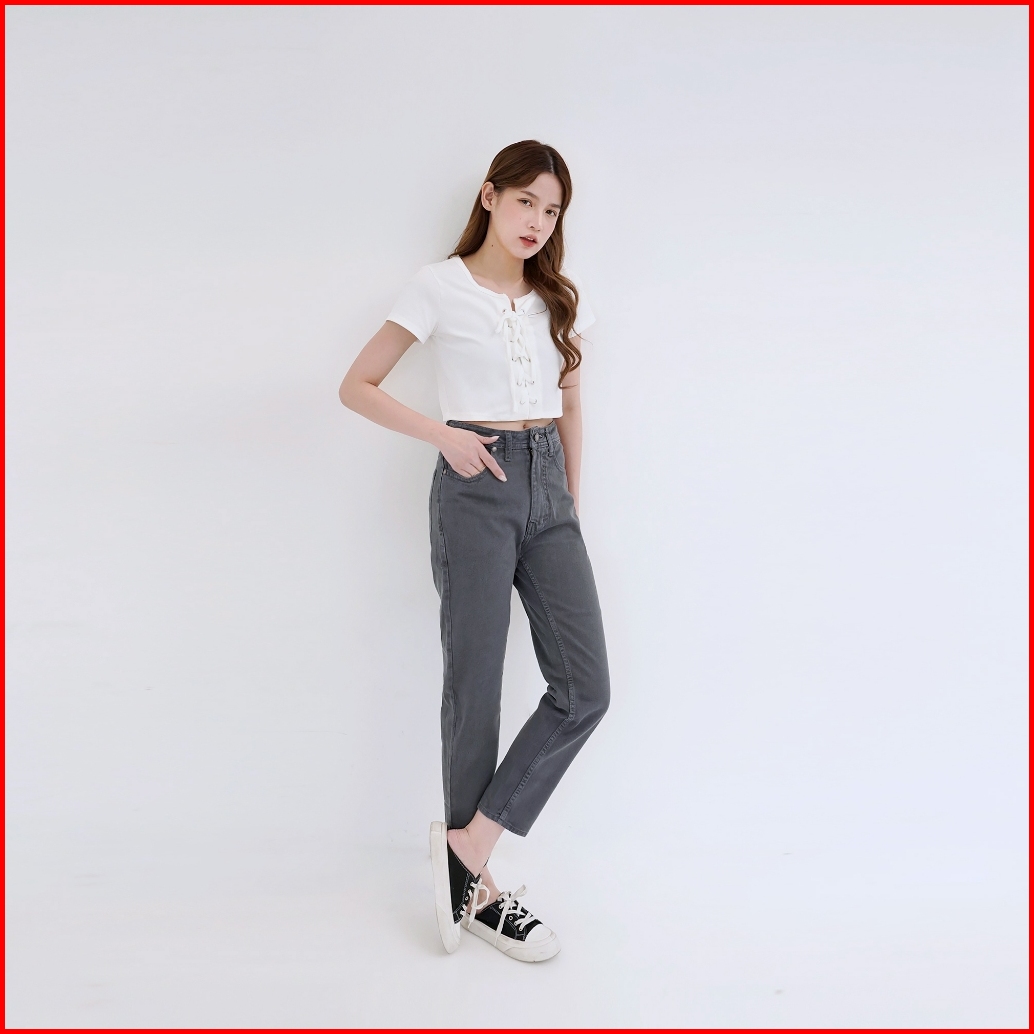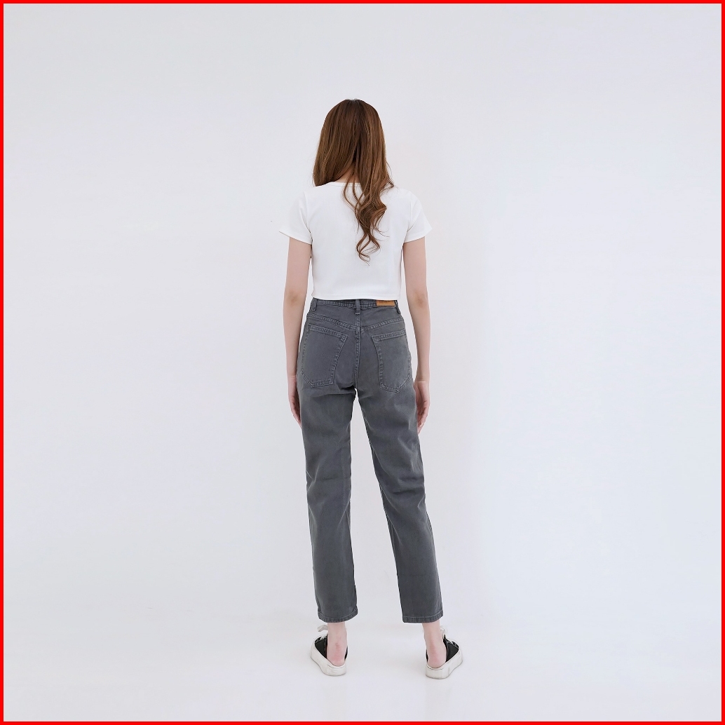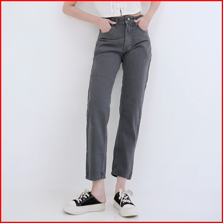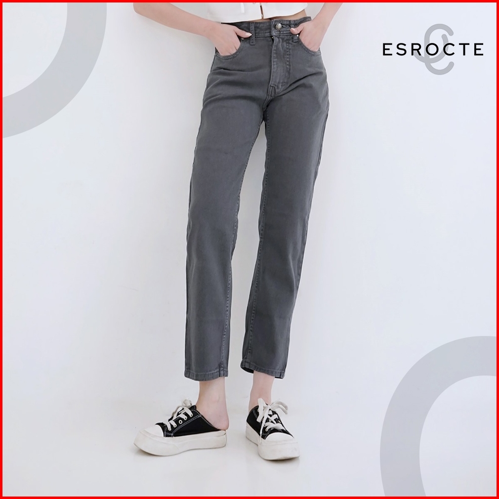 Esrocte Aurea Pants Celana Mom Jeans High-waist Wanita Ash Grey 2638