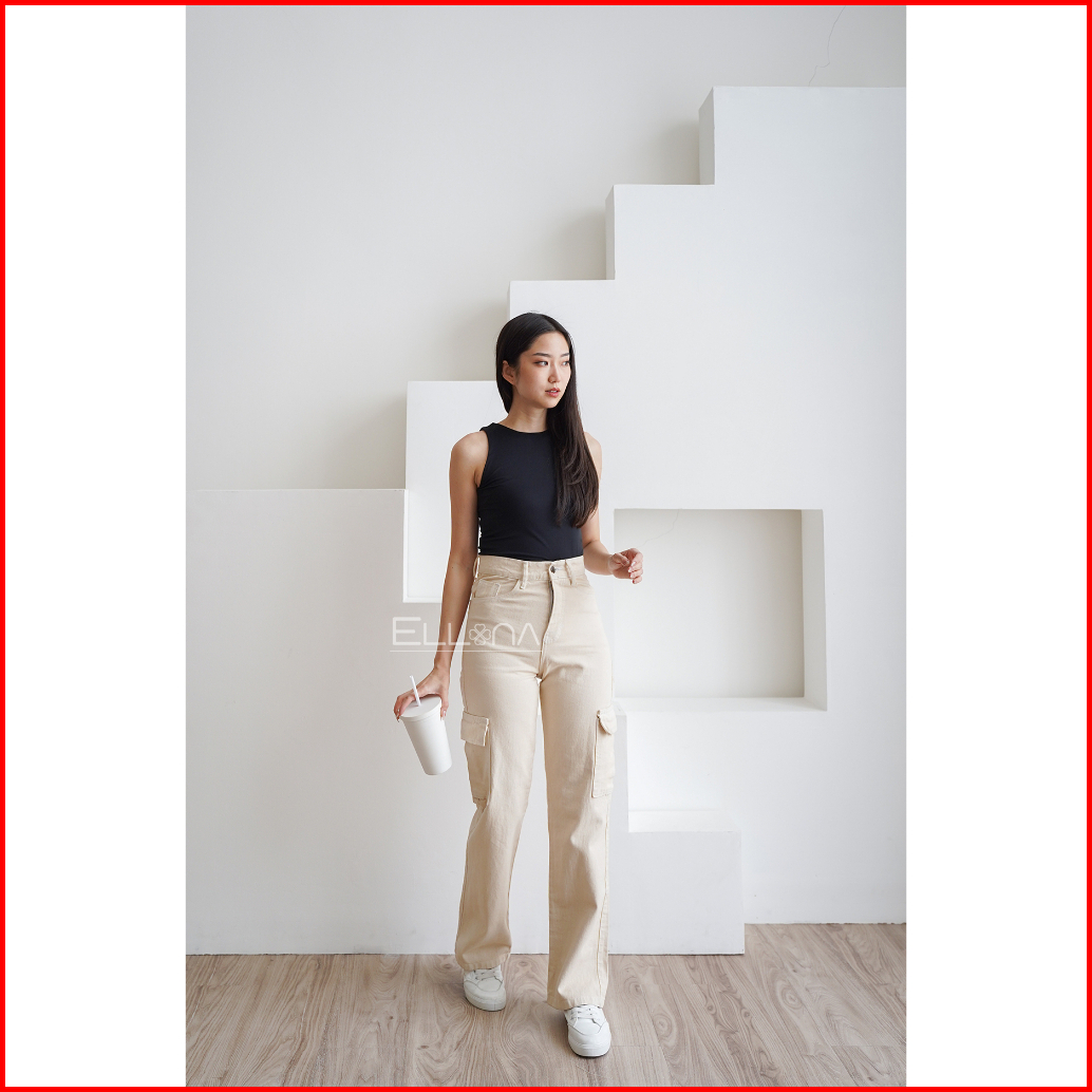Osso Jeans - Celana Jeans Cargo Warna Pastel