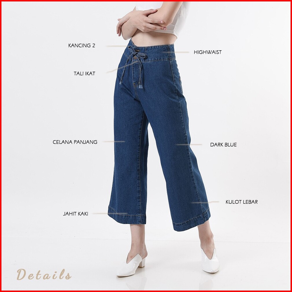 Osso Jeans- Alice Kulot Jeans Tali Warna Biru Tua