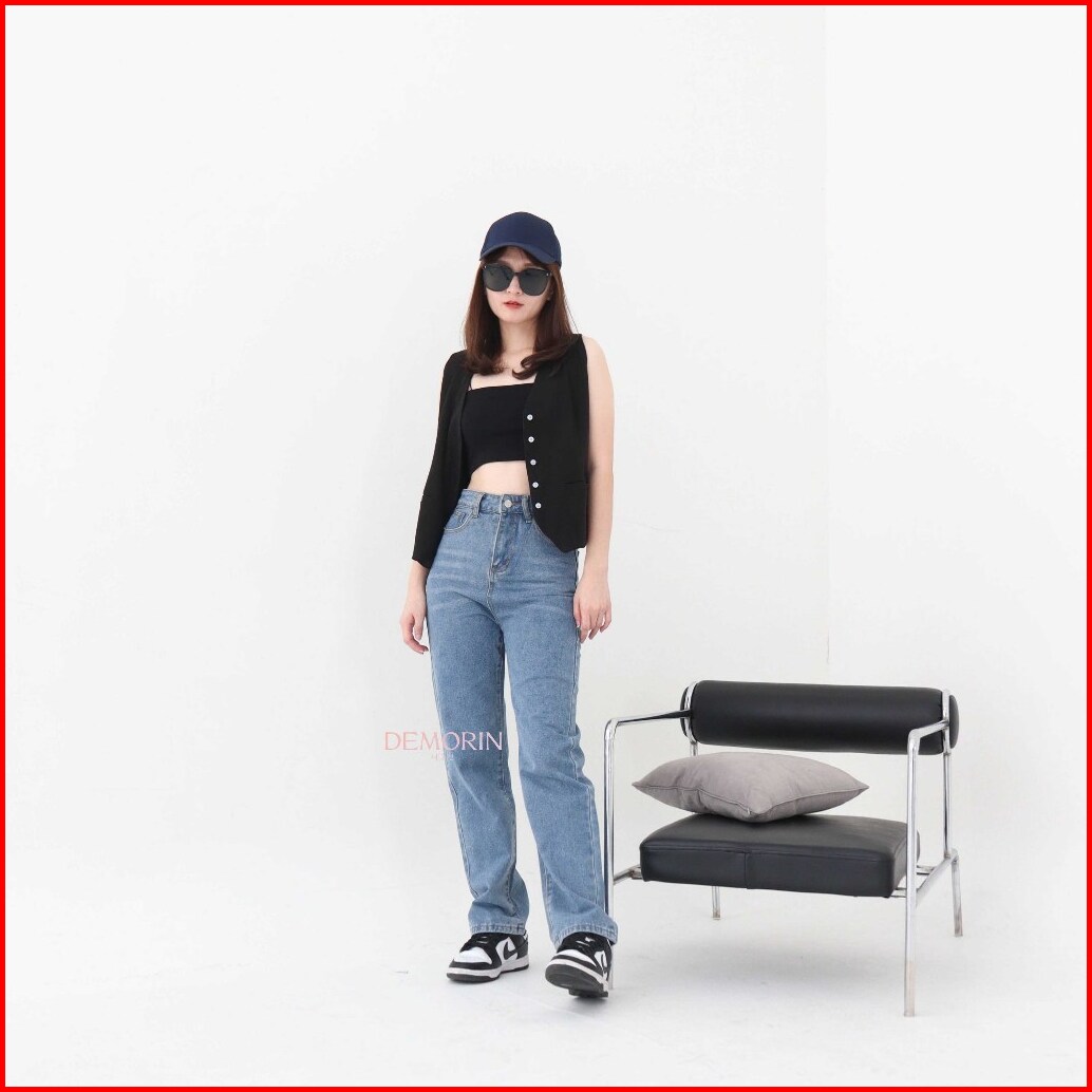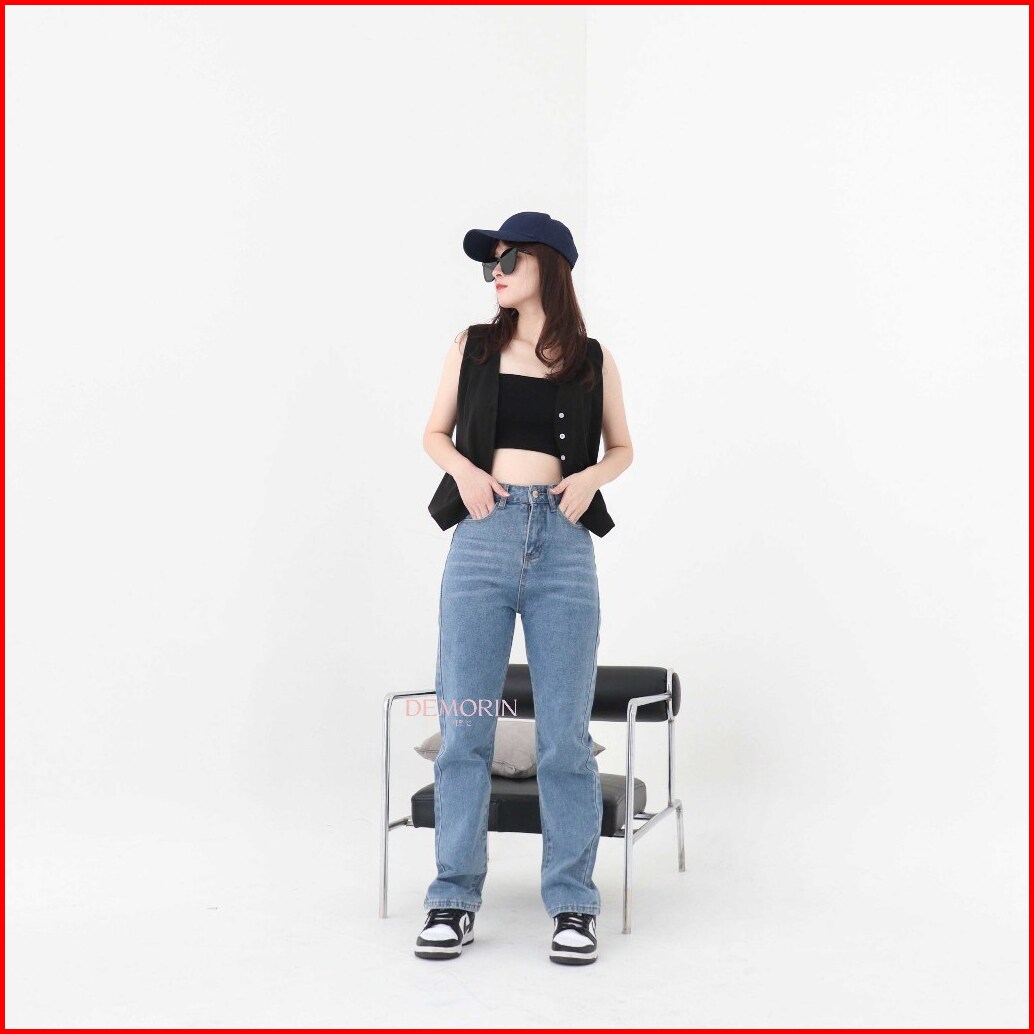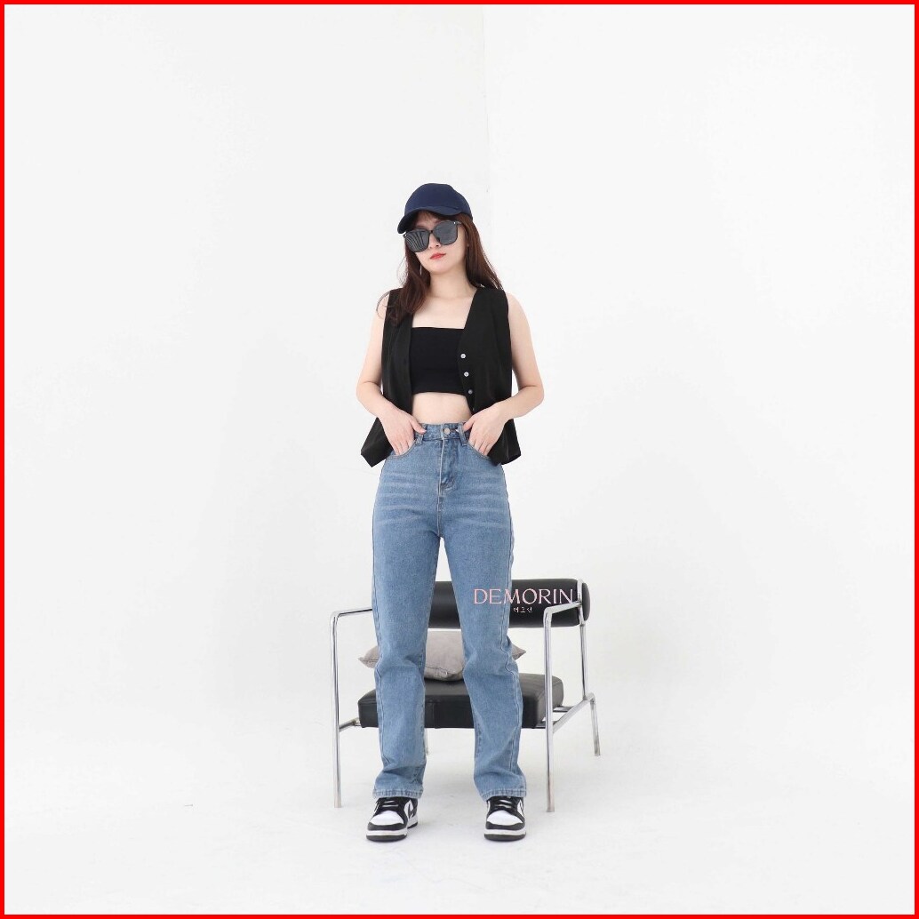 Demorin Celana Panjang Jeans Wanita Slim Fit High Waist Bahan Denim Premium Boyfriend Cewek X305