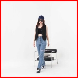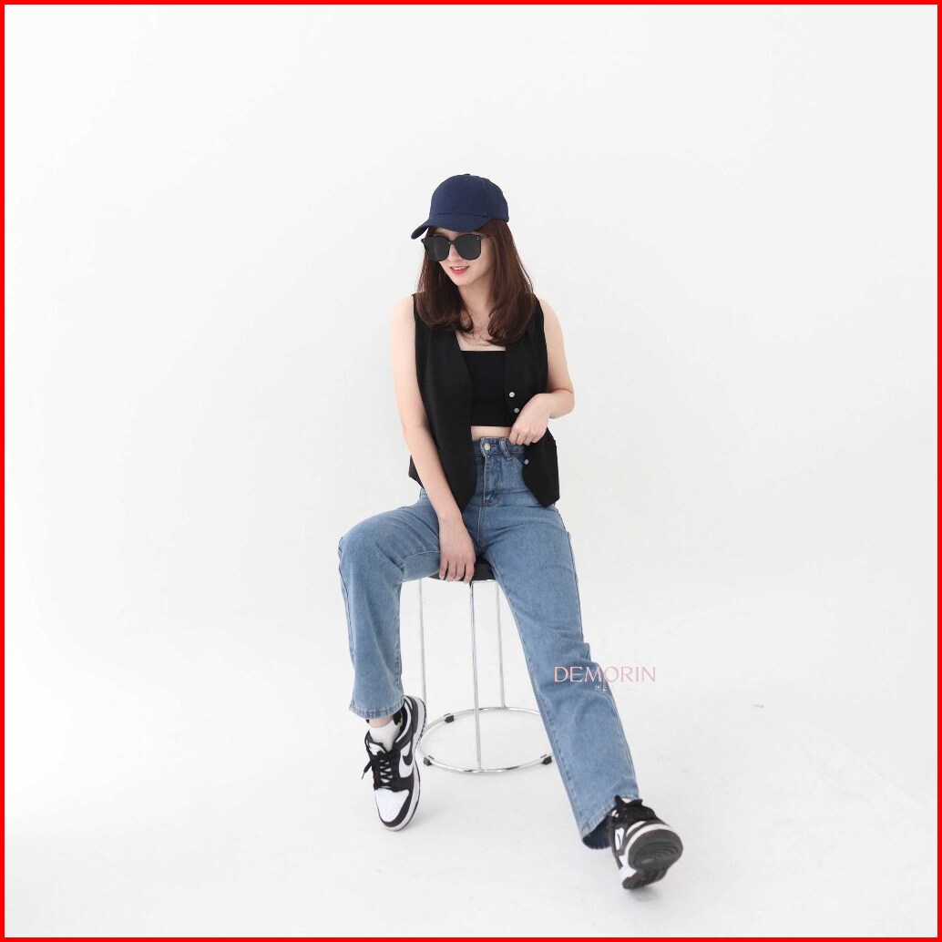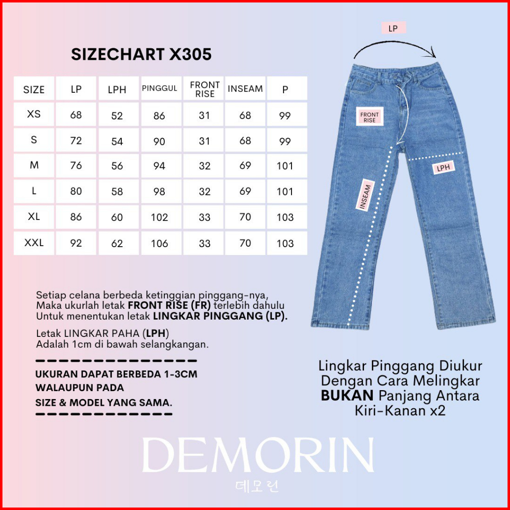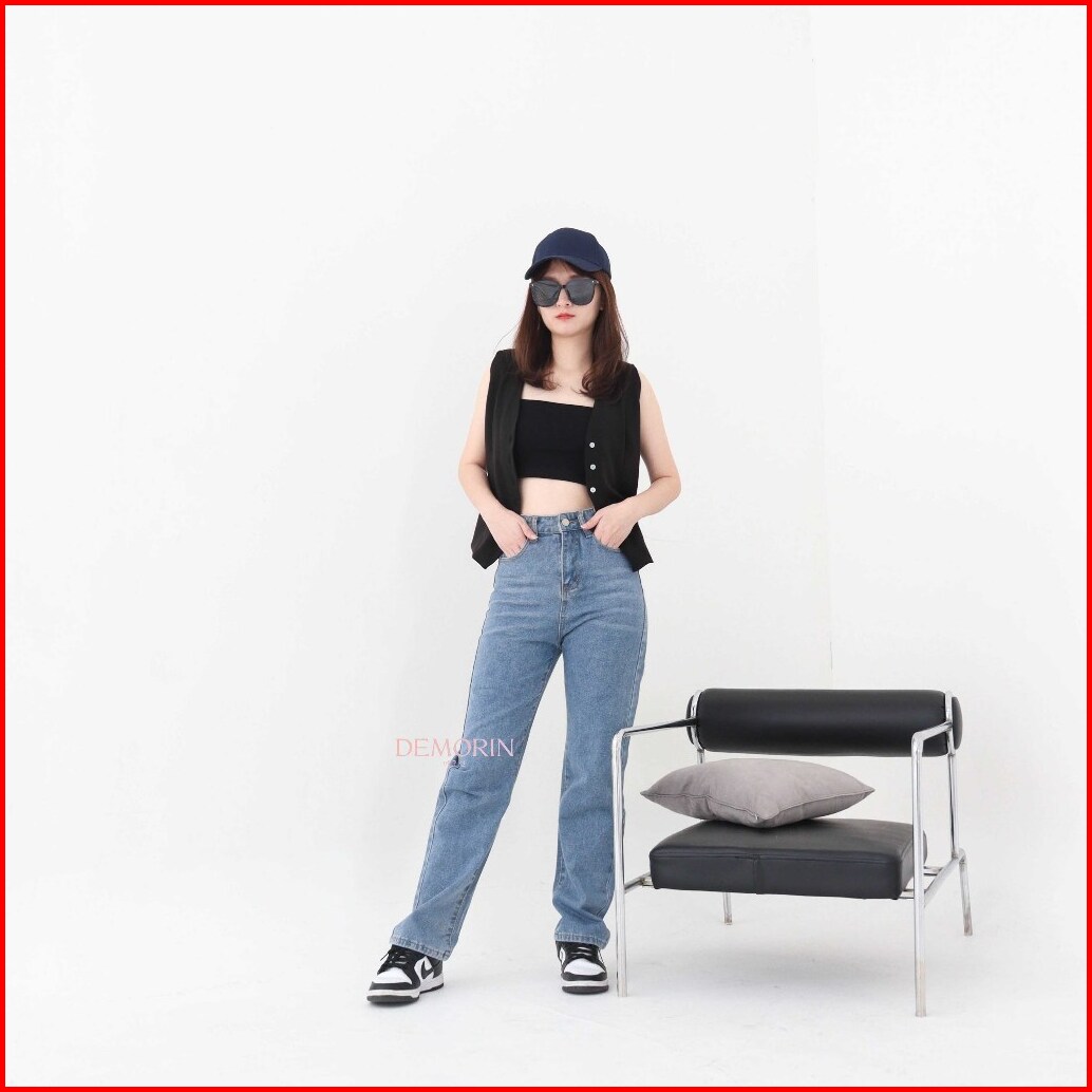 Demorin Celana Panjang Jeans Wanita Slim Fit High Waist Bahan Denim Premium Boyfriend Cewek X305