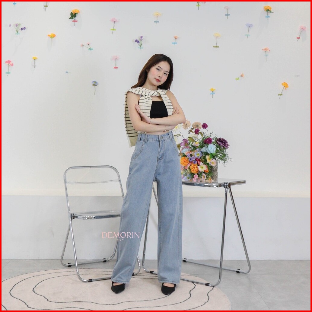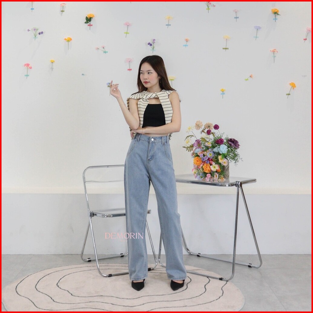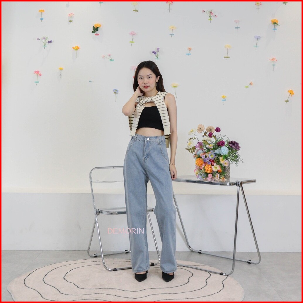 Demorin Celana Baggy Jeans Panjang Highwaist Jeans Wanita Korean Style Kekinian Ty X58