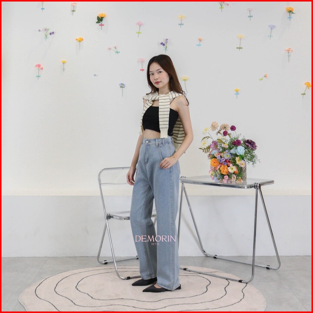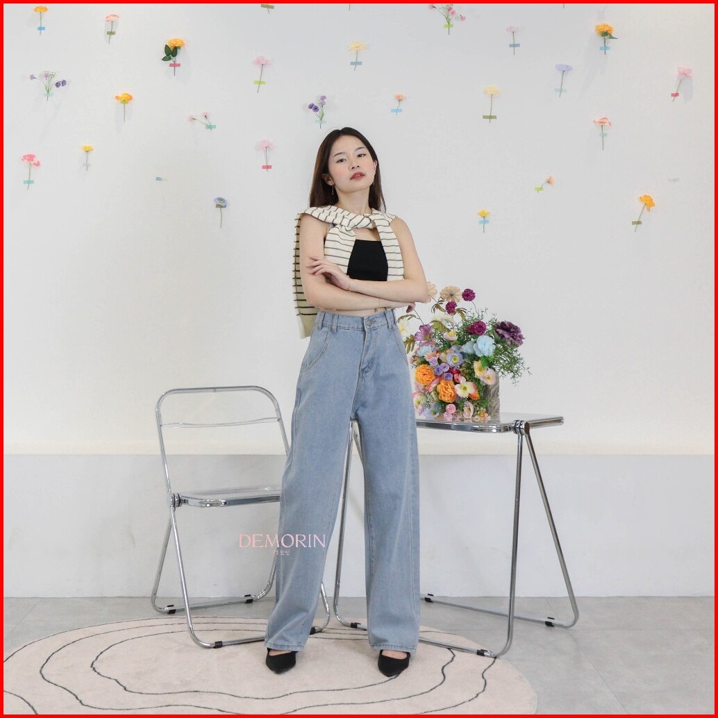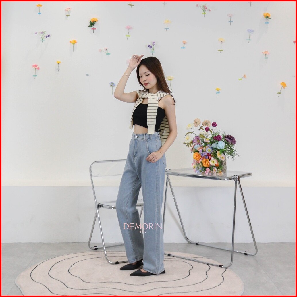 Demorin Celana Baggy Jeans Panjang Highwaist Jeans Wanita Korean Style Kekinian Ty X58