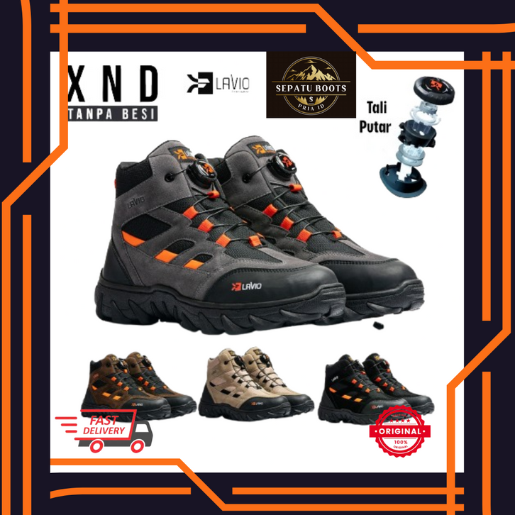 Sepatu Pria boots Hiking Trekking tektok kerja Tali Putar Spin-on Lacing Reflector Best Quality Lavio XND Trekking