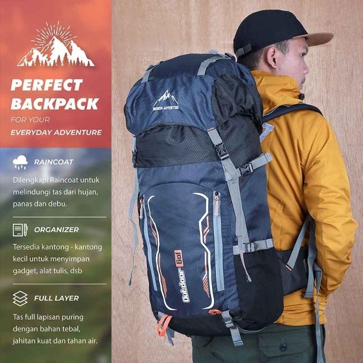 Tas Ransel Keril Gunung Pria Kapasitas 60 Liter Tas Carrier Camping Hiking Cowok Free Raincover