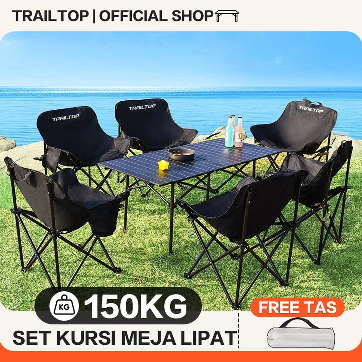 TrailTop Meja Kursi Lipat Outdoor 1 Set Meja Lipat Portable Kursi Lipat Lebar dan Tebal Beban 150KG