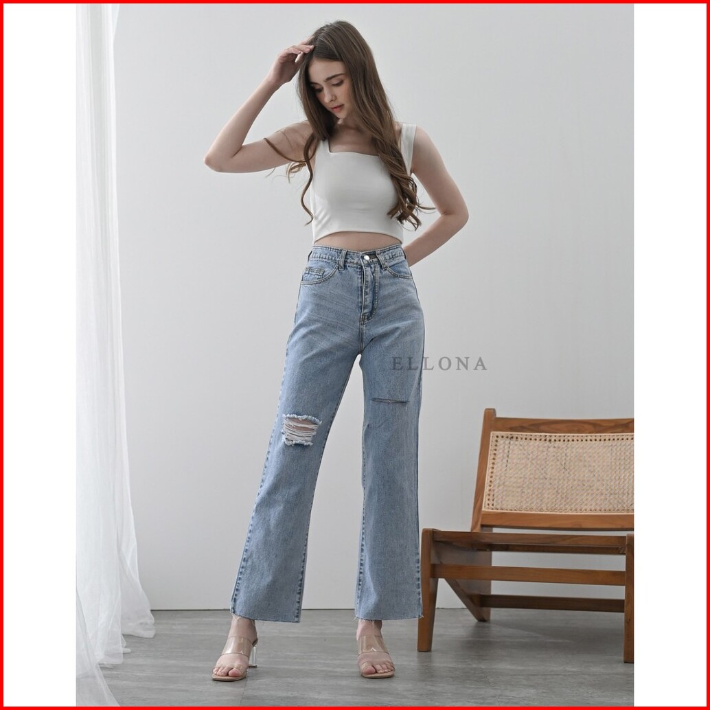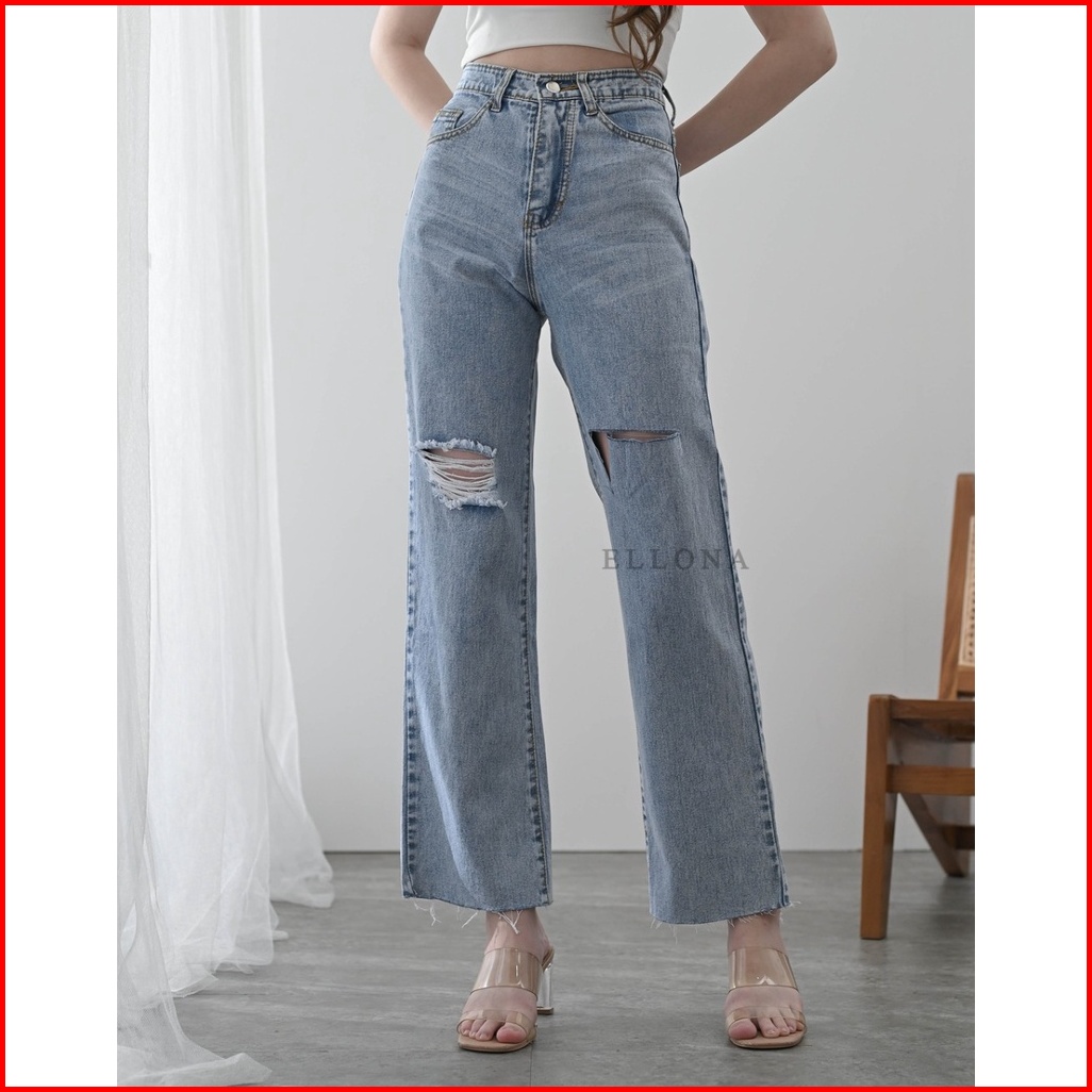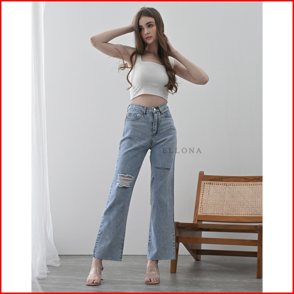 Osso Jeans - Fiona Kulot Jeans Snowblue Ripped Tembus