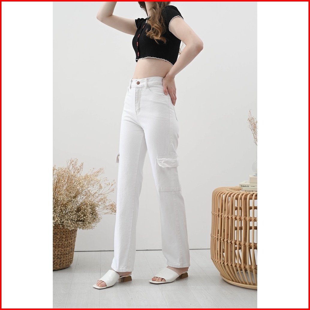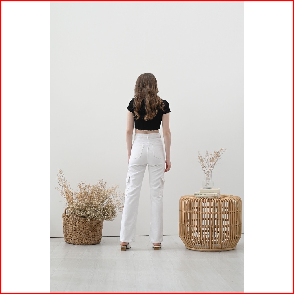Osso Jeans - Celana Jeans Cargo Warna Putih