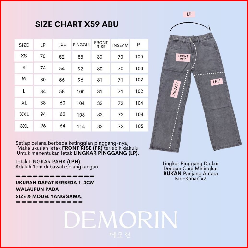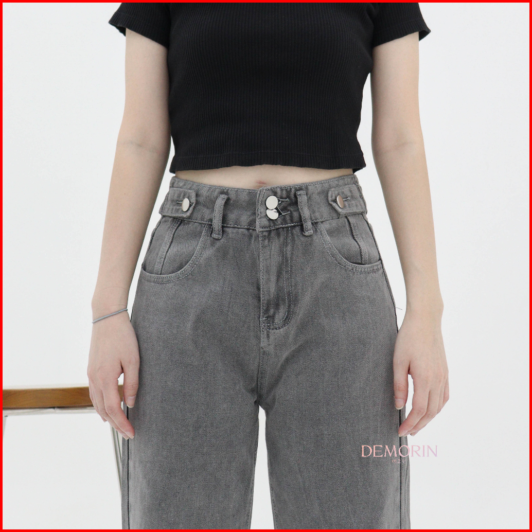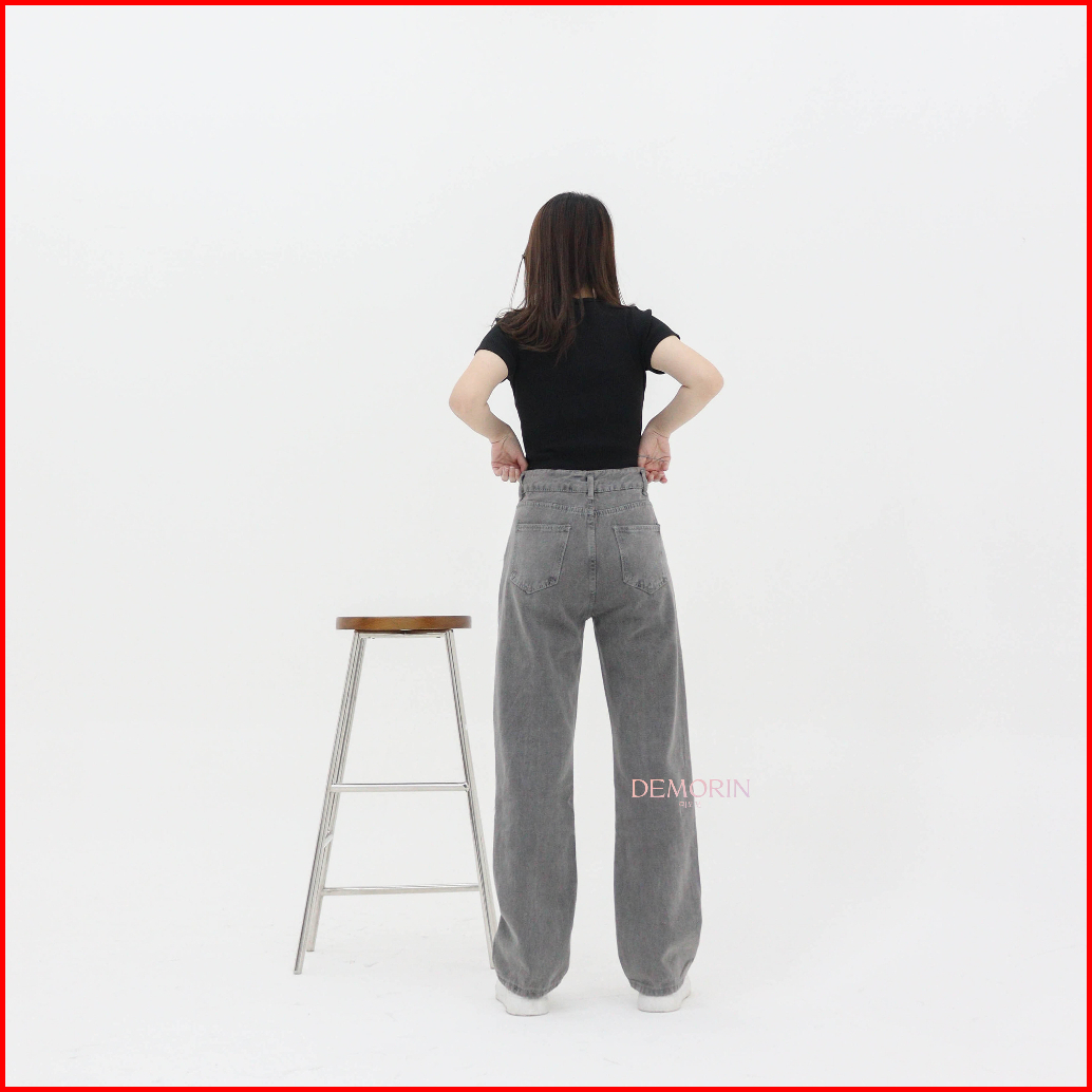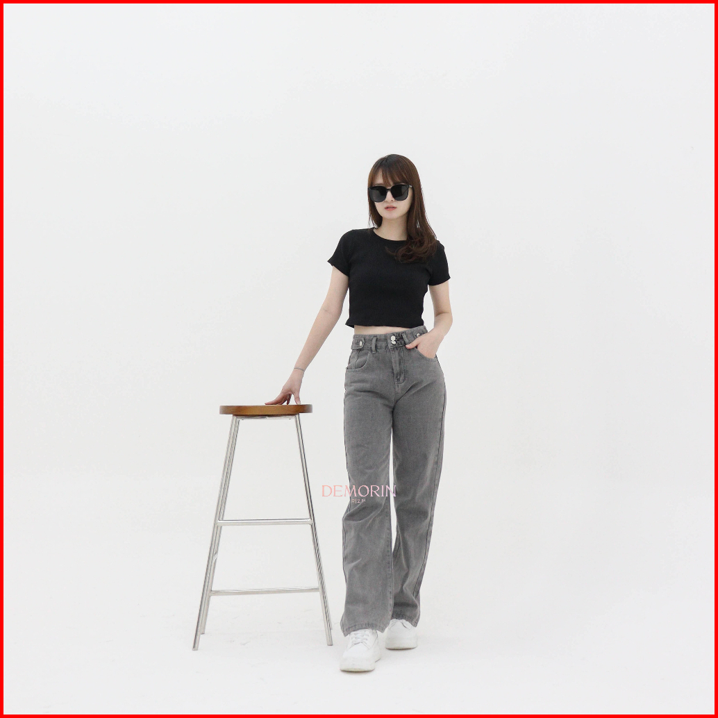 Demorin Celana Panjang Jeans Wanita High Waist Straight Fit Cewek Denim Tebal Baggy Korean X59 Abu