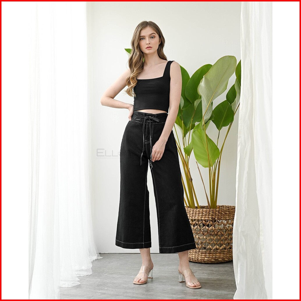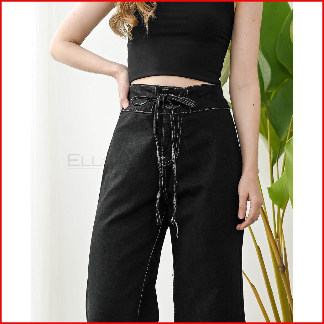 Osso Jeans- Alice Kulot Jeans Tali Warna Hitam List