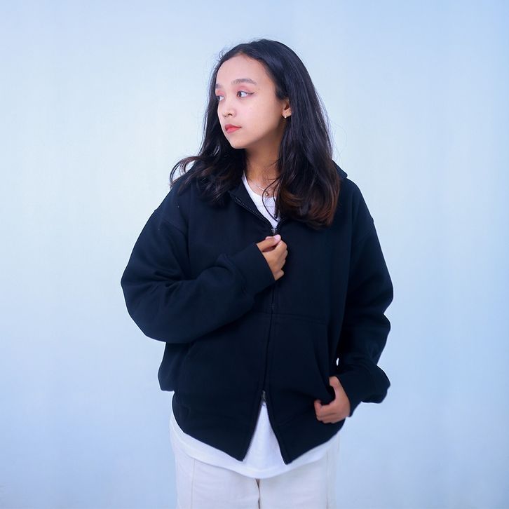 Hoodie Double Zipper Boxy | Unisex Pria Wanita Bahan Cotton Fleece