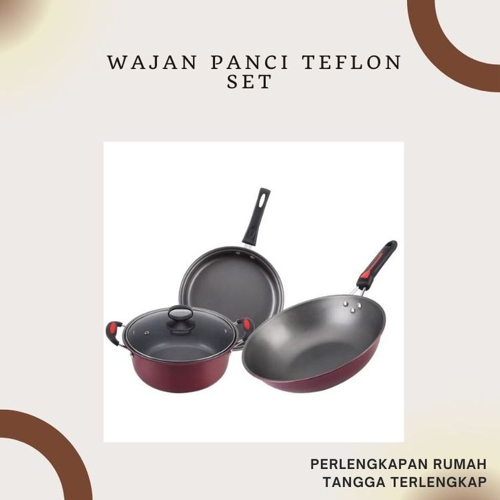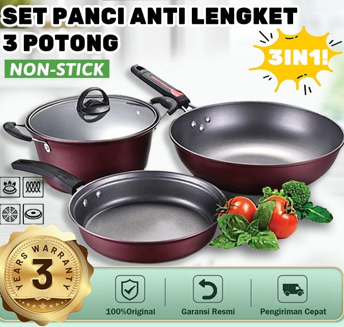 WAJAN PANCI TEFLON SET PENGGORENGAN 3 PCS PANS POTS QME KUAT DAN ANTI LENGKET SERTA MUDAH DIBERSIHKAN