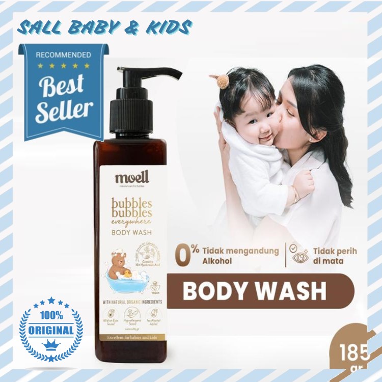 MOELL BODY WASH 185GR- BUBBLES BUBBLES EVERYWHERE-SABUN BAYI- SLS FREE SALL BABY & KIDS / IBU DAN BAYI / ANAK / OFFICIAL