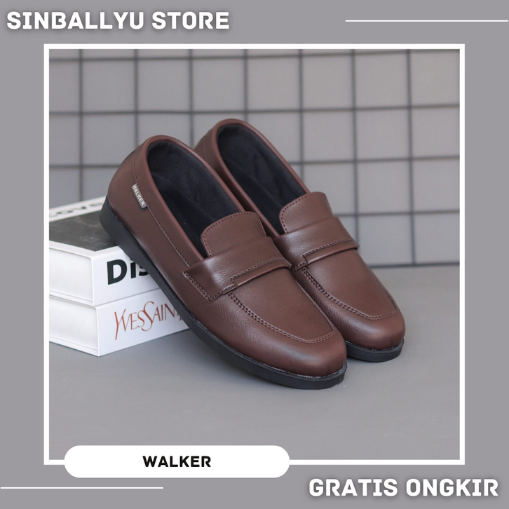 Sepatu Loafers Coklat Pria Kerja Kantor Guru Slip On Formal Kasual Kevn Original Wlkr x Sinballyu Store