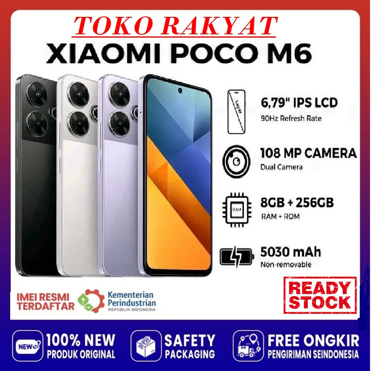 (BEBAS ONGKIR) Hp XIAOMI POCO M6 NFC RAM 8+256GB | Mediatek Helio G91 Ultra | Camera 108MP | Batery 5000mAh