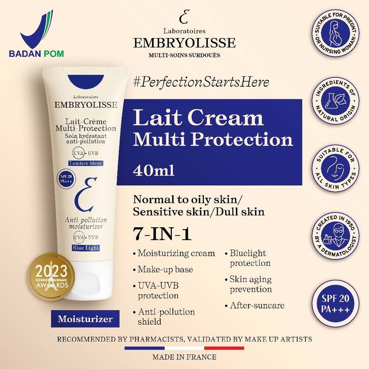 Embryolisse Lait-Creme Multi-Protection 40ml – 7 IN 1 : Pelembab Moisturizer Wajah + Makeup Cleanser Remover + Makeup B
